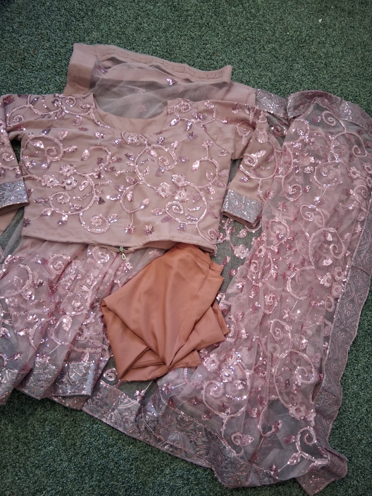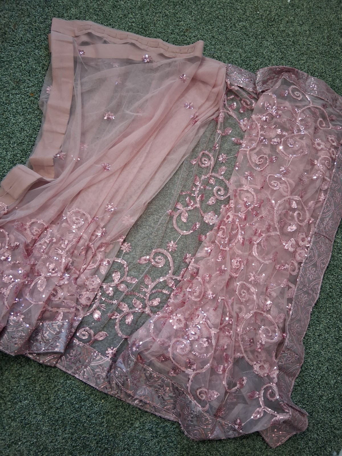Ready to Wear Sequin Net Saree Full Sleeves 46 Chest /Pink -SALE 45