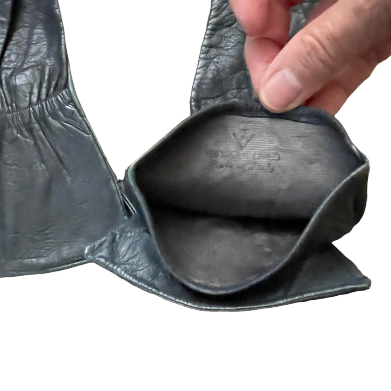 как выглядит Vtg 80s Leather Gloves Women 7 Silk Lined Made In Italy Green Charcoal Gray S фото