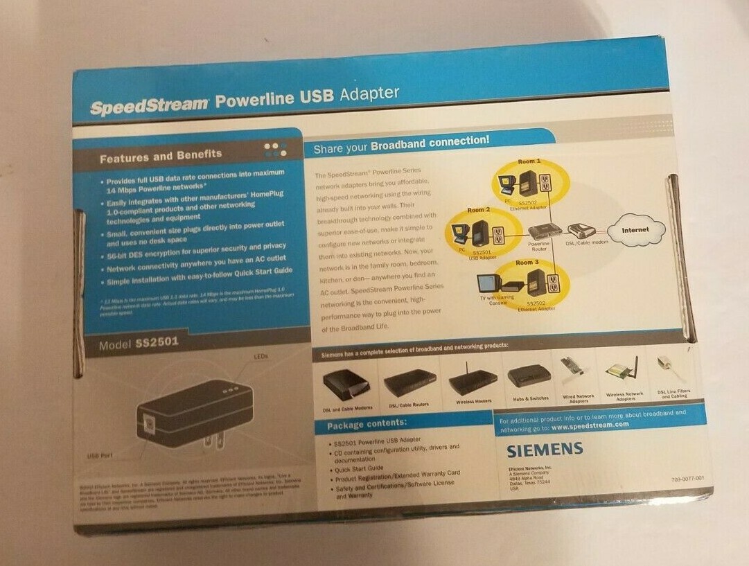 Siemens SS2501 SpeedStream Powerline USB Network Adapter