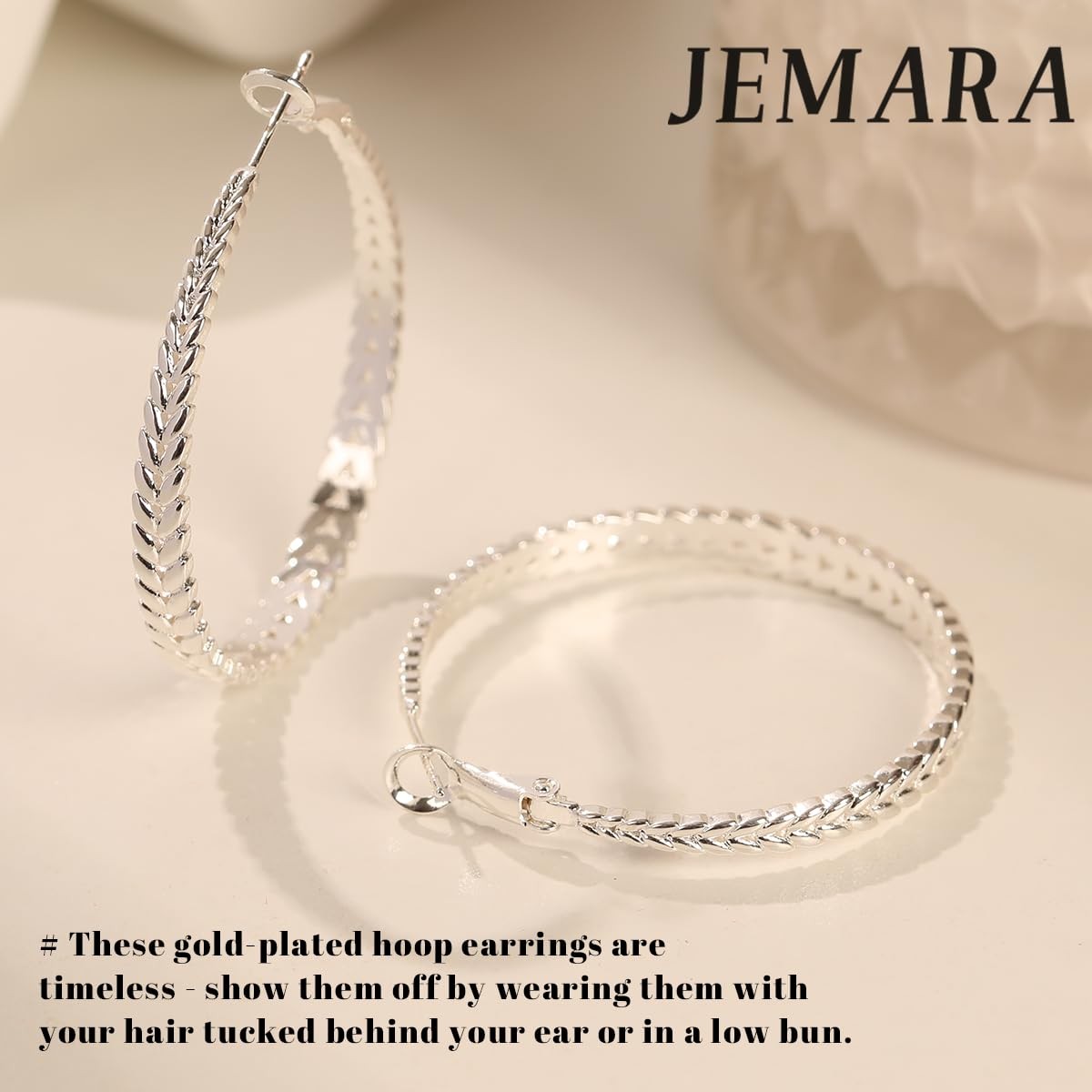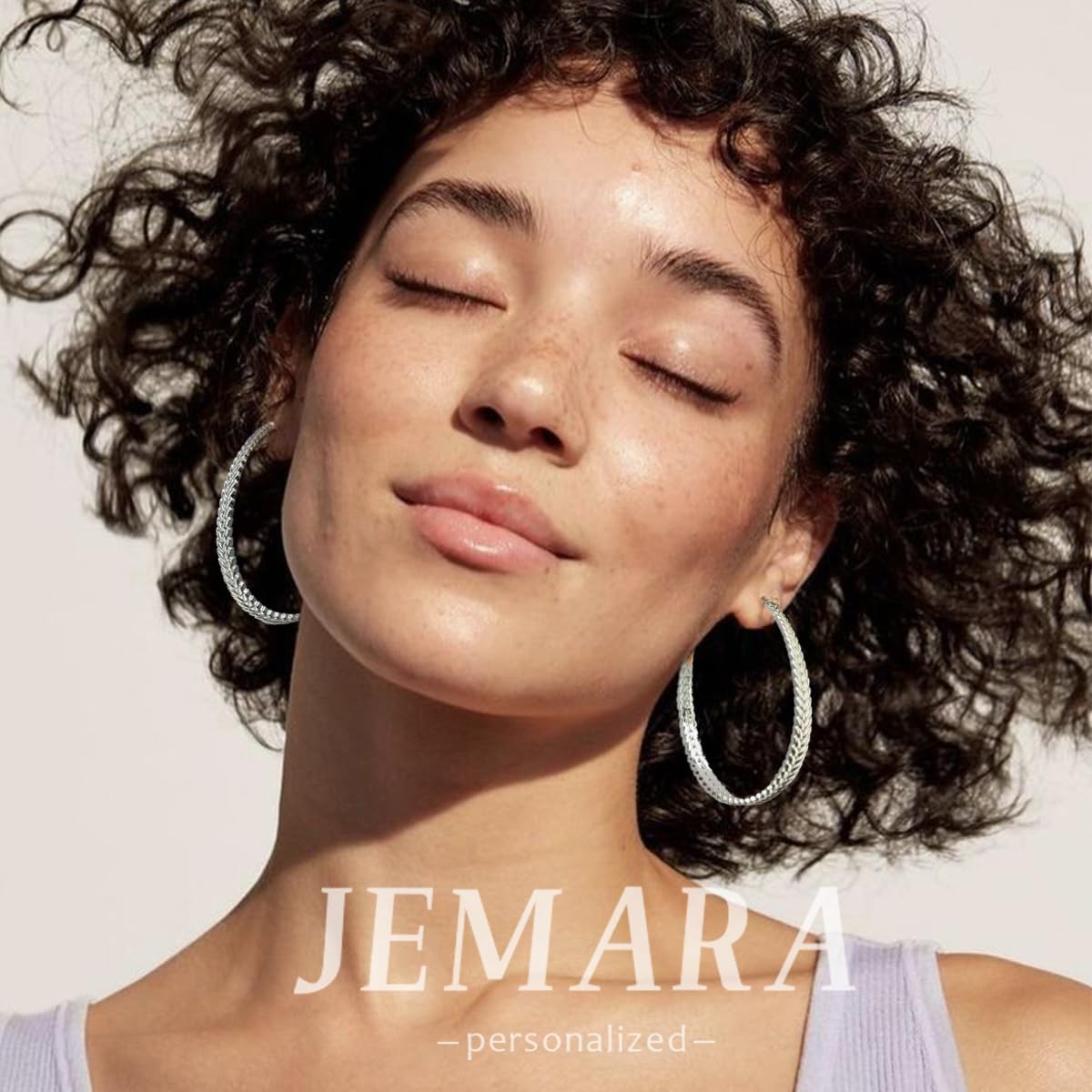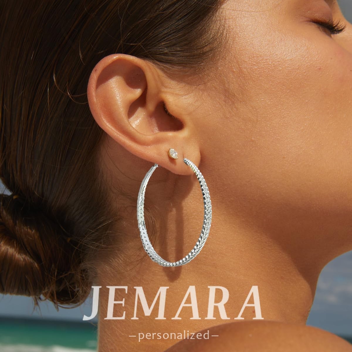 как выглядит JEMARA Large Silver Hoop Earrings for Women 925 50 millimeters, Silver-50MM фото