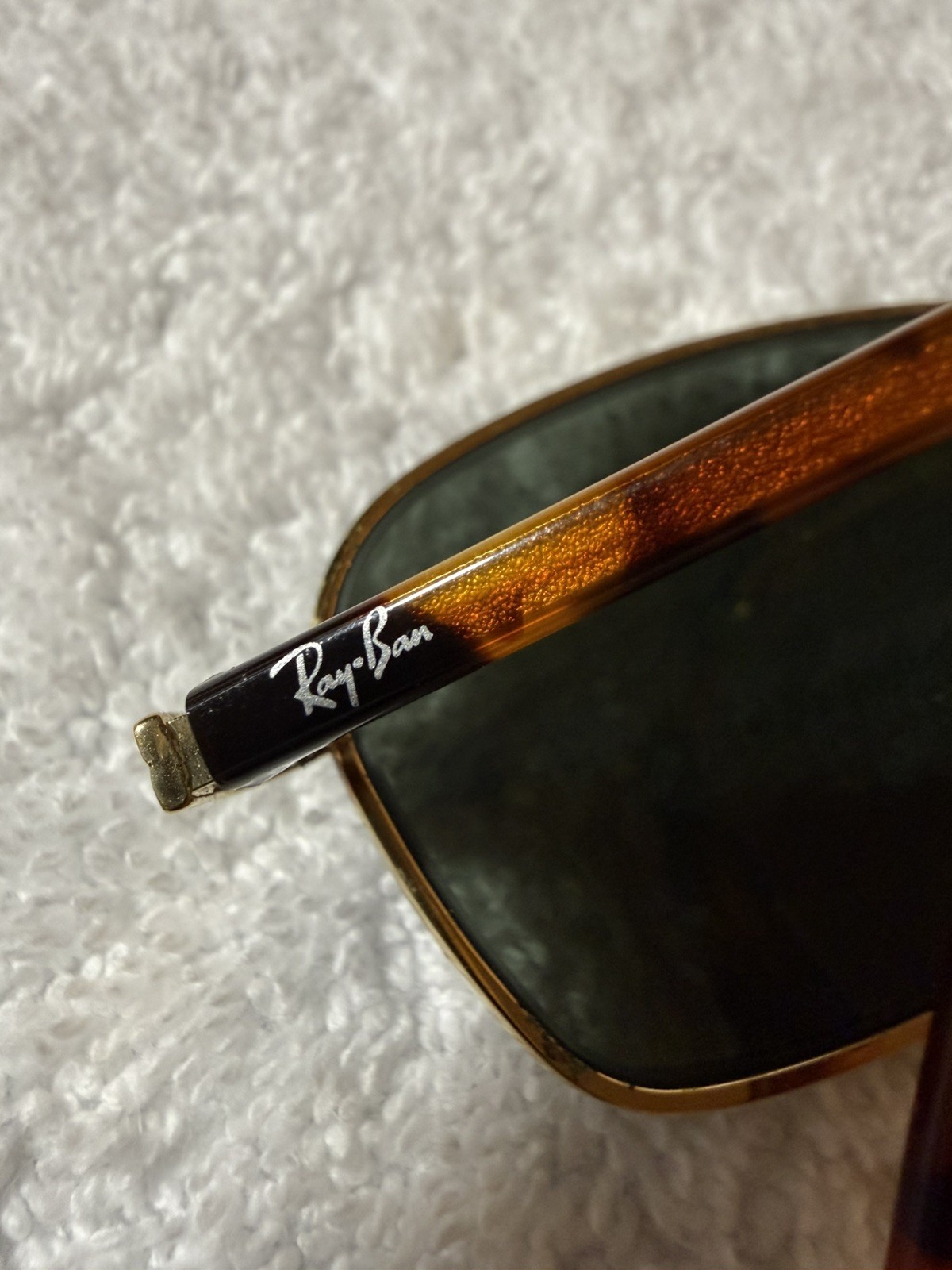 как выглядит VINTAGE B L RAY BAN W2190 GOLD/TORT G15 SLEEK RECTANGULAR CROSS-WALK SUNGLASSES фото