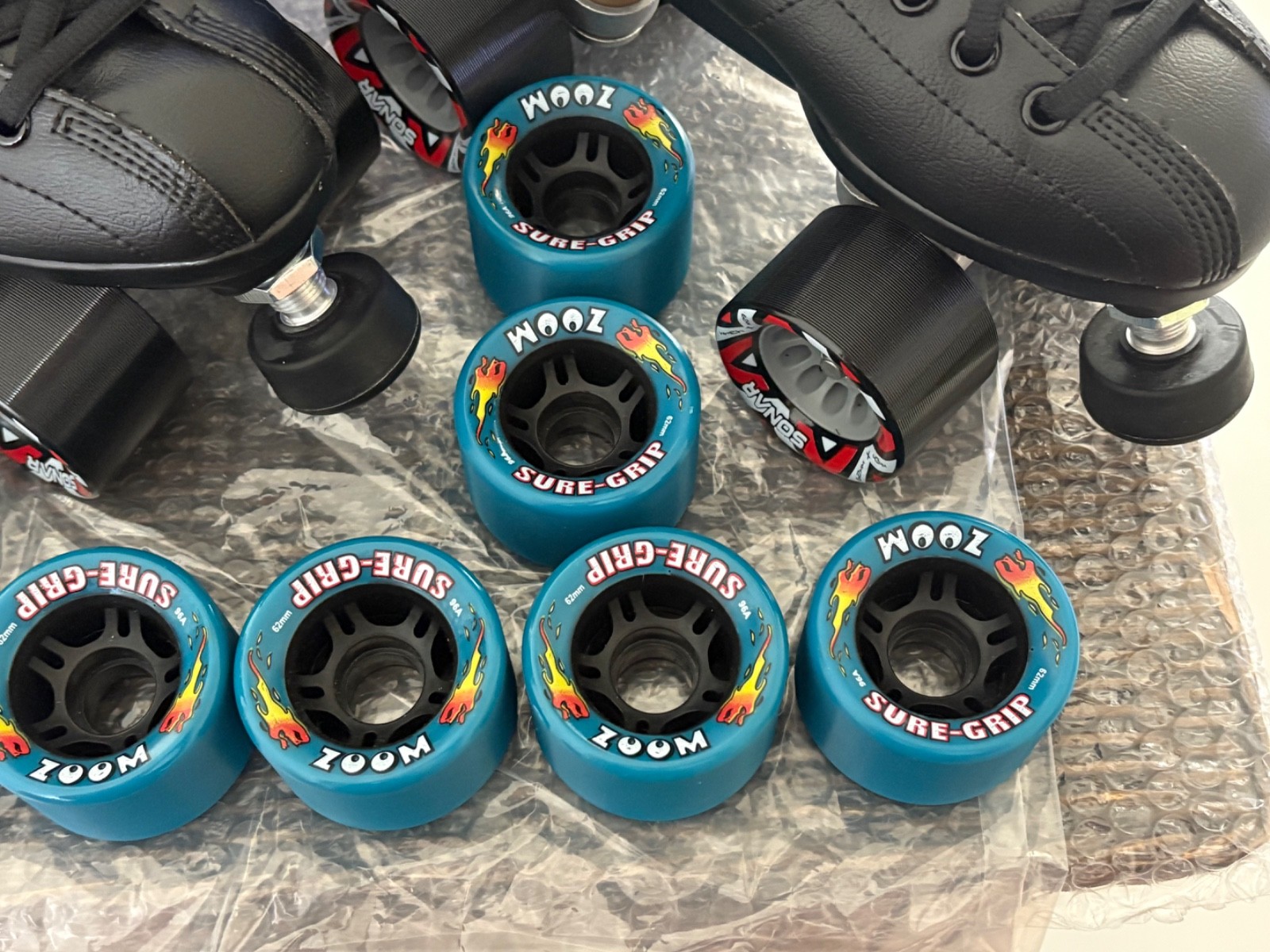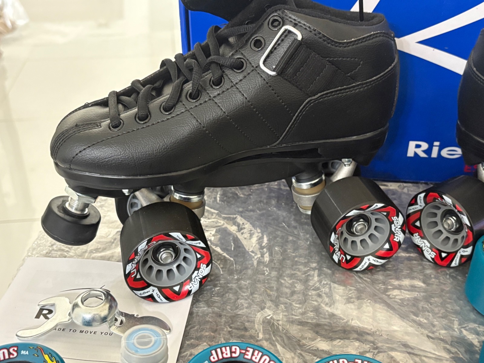 New Reidell R3 Quad Speed /Roller Skates Size 6 Black Set Teal Zoom Wheels NEW