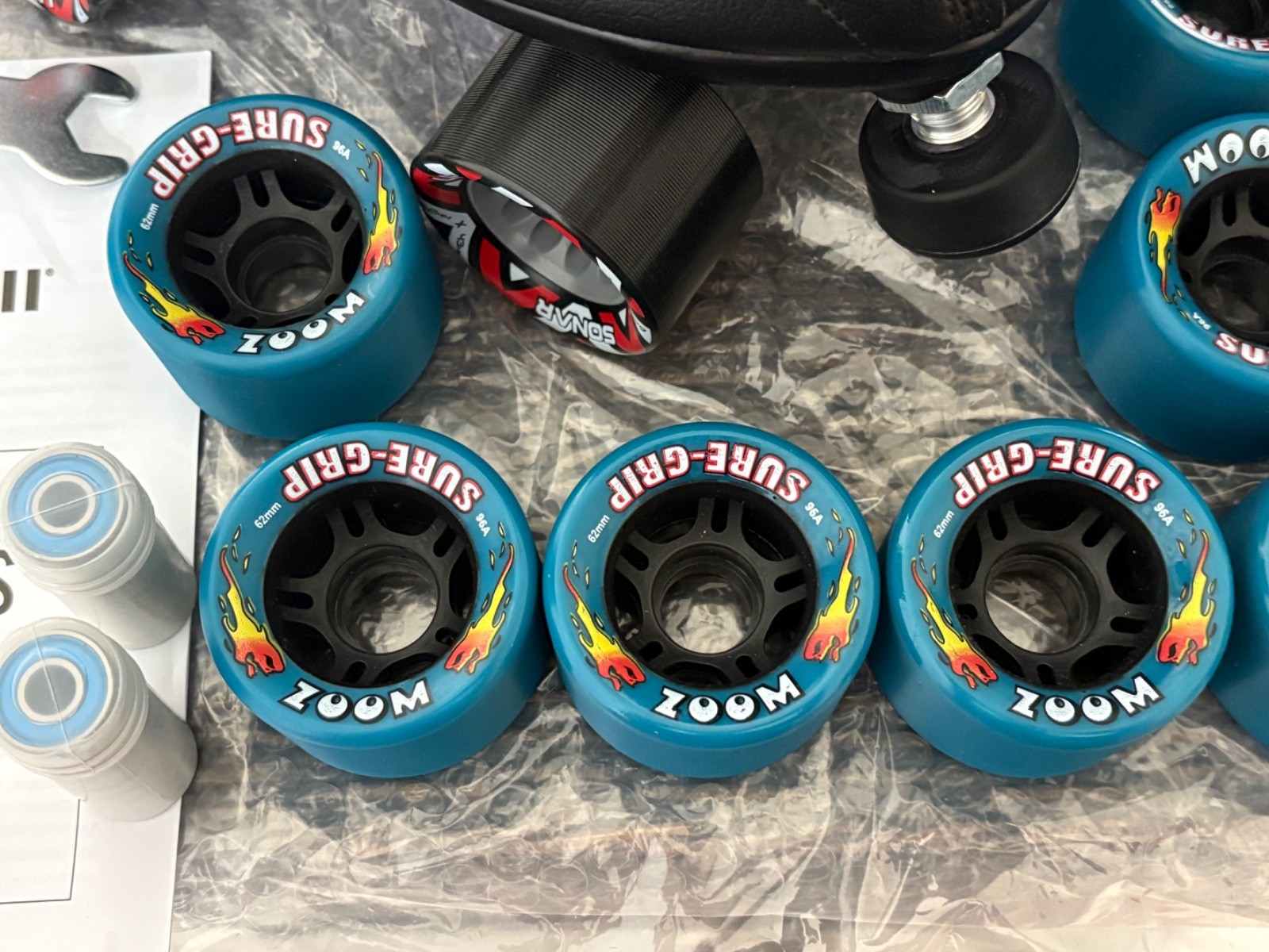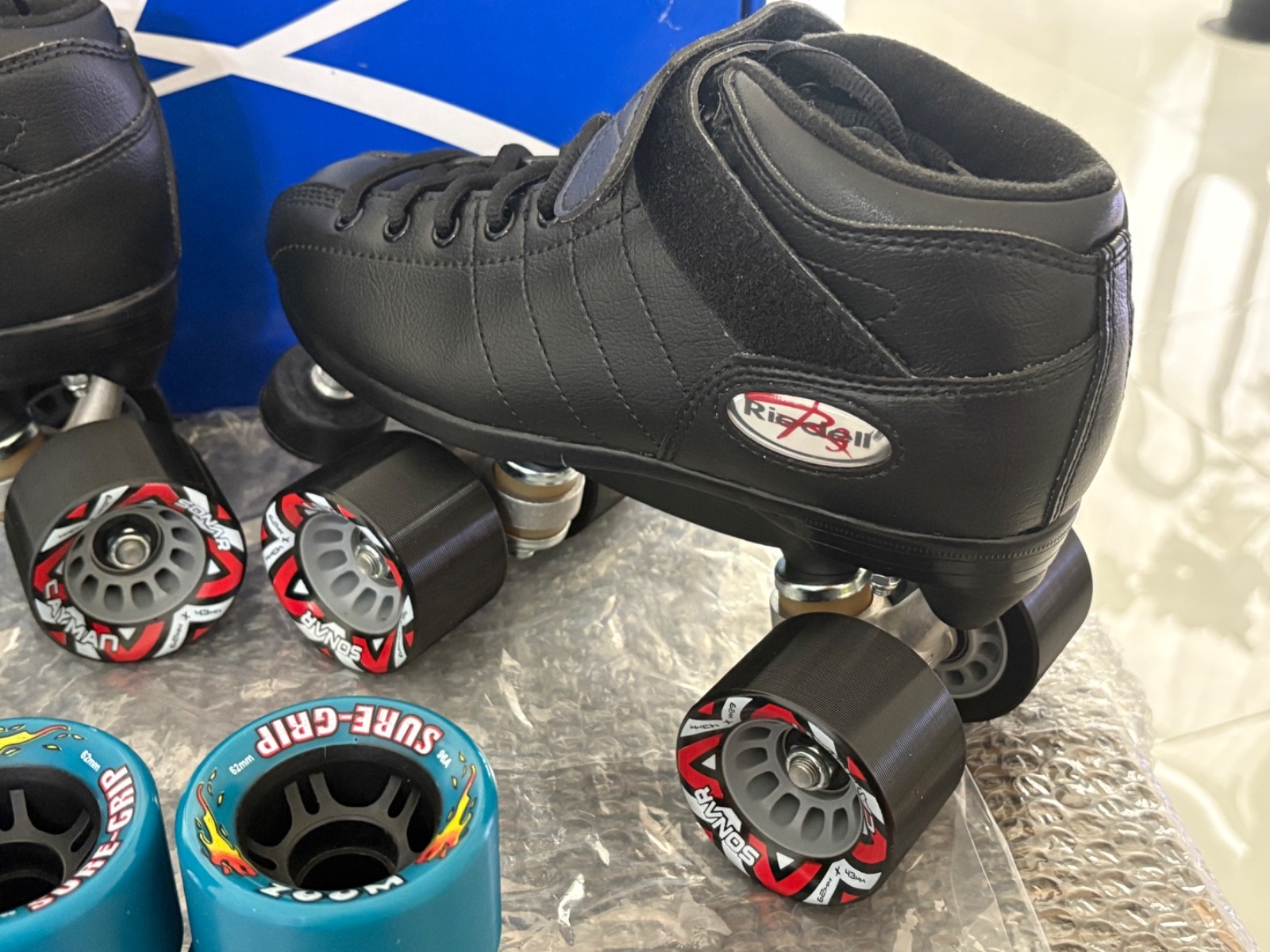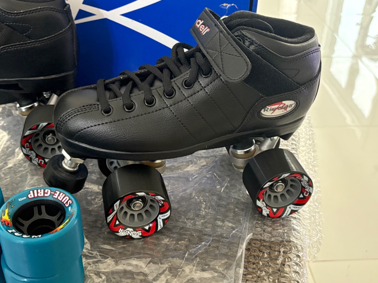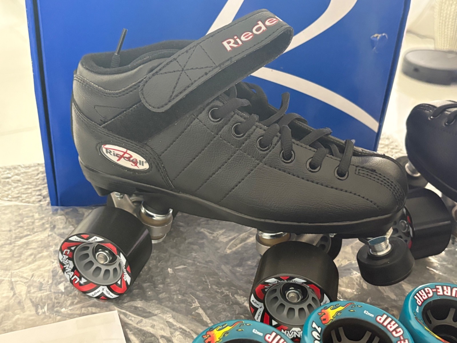как выглядит New Reidell R3 Quad Speed /Roller Skates Size 6 Black Set Teal Zoom Wheels NEW фото