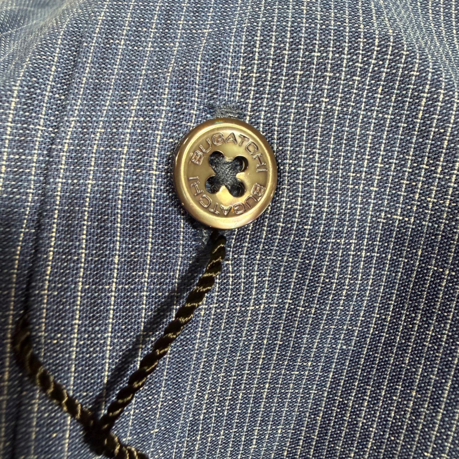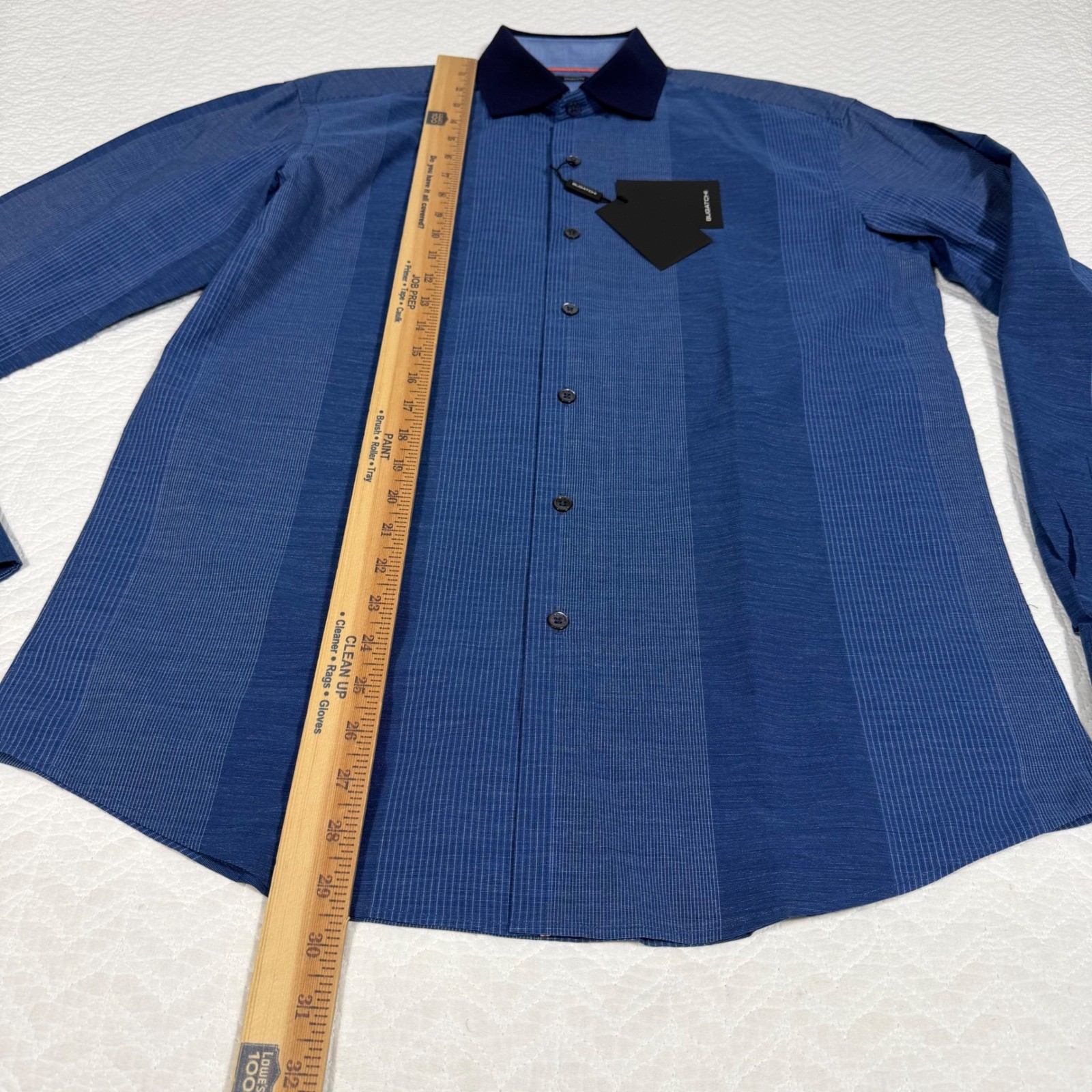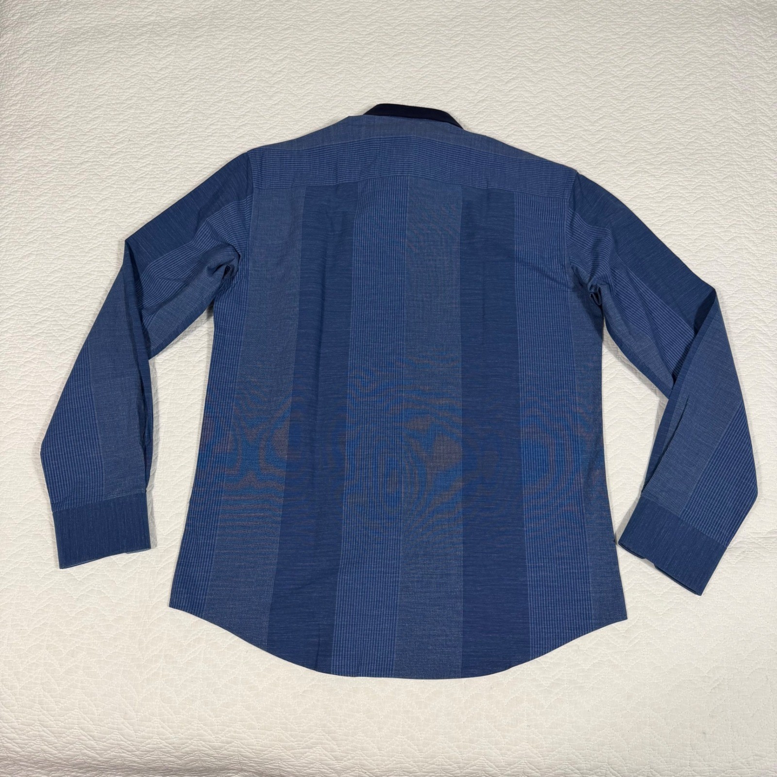как выглядит Bugatchi Uomo Shirt Mens Medium Blue Striped Shaped Fit Contrast Collar NWT фото