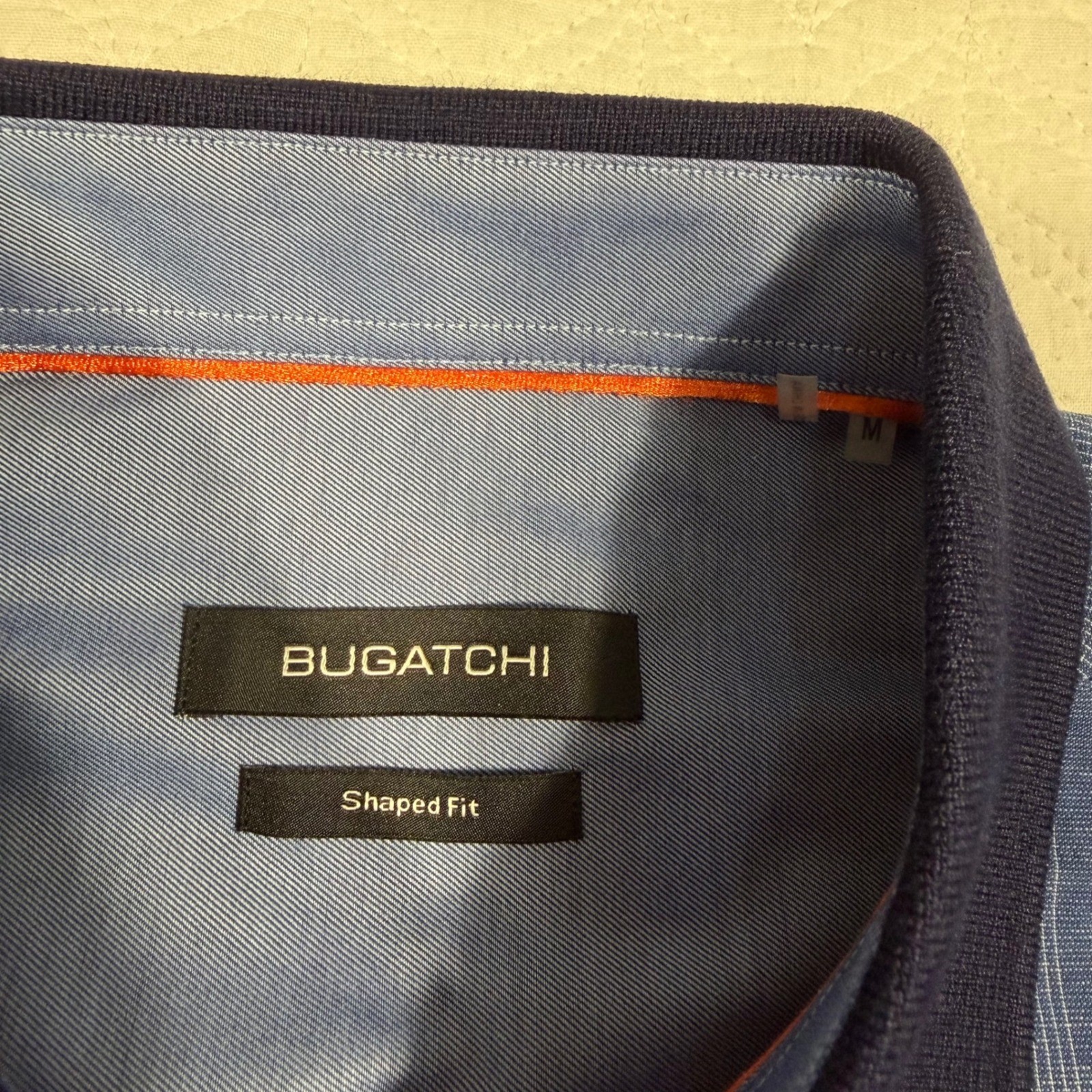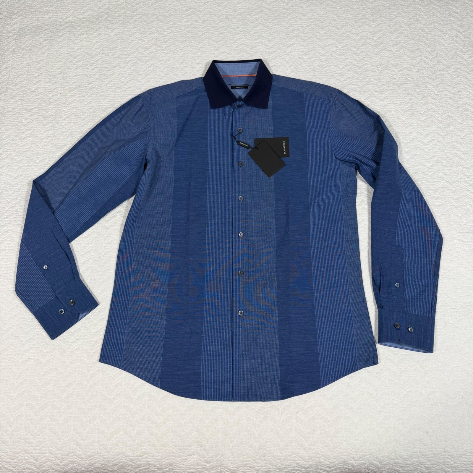 Bugatchi Uomo Shirt Mens Medium Blue Striped Shaped Fit Contrast Collar NWT
