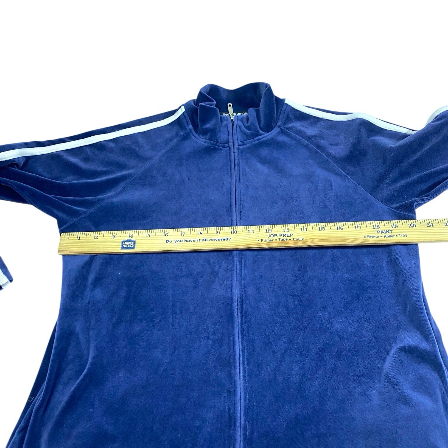 как выглядит Sag Harbor Petite Womens MED Blue Lounge Track Suit Set Knit Velour Stretch фото