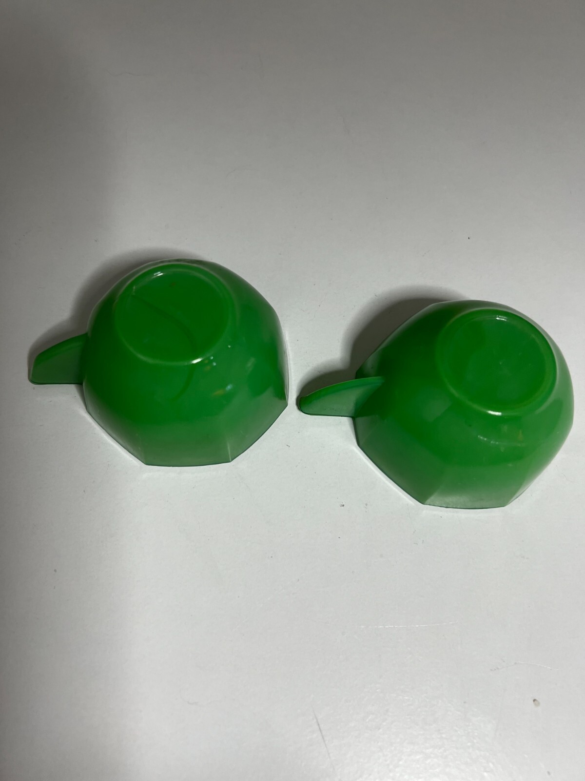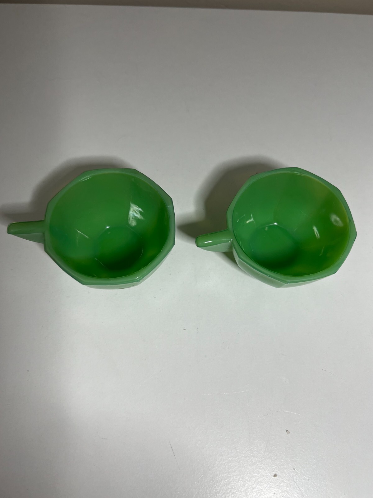 Akro Agate Tea Set Octagonal GREEN CUPS Closed Handle Set of 2