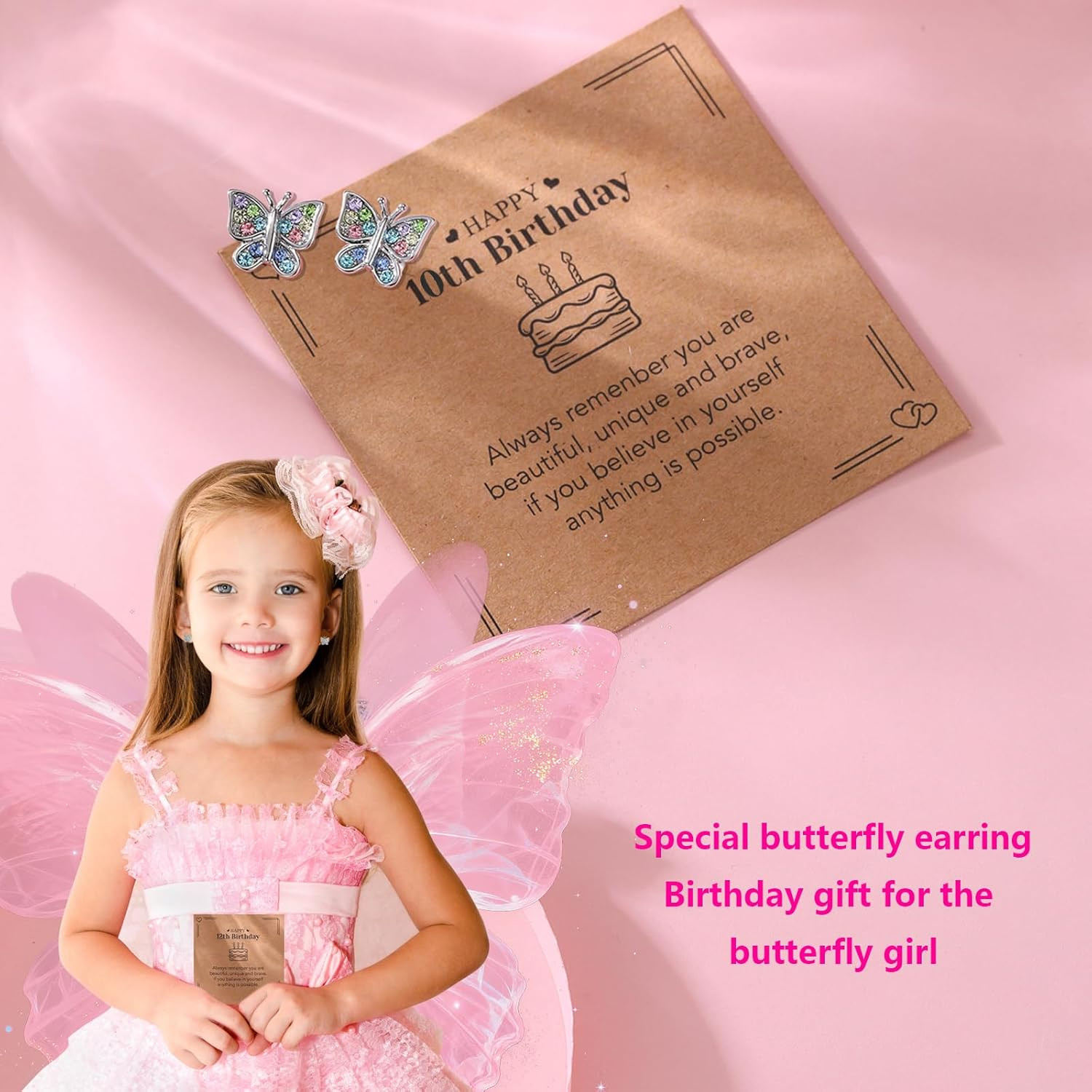 • Crystal Butterfly Earrings for Girls 6Th 7Th 8Th 9Th 10Th 11Th 12Th 13Th 16Th 18