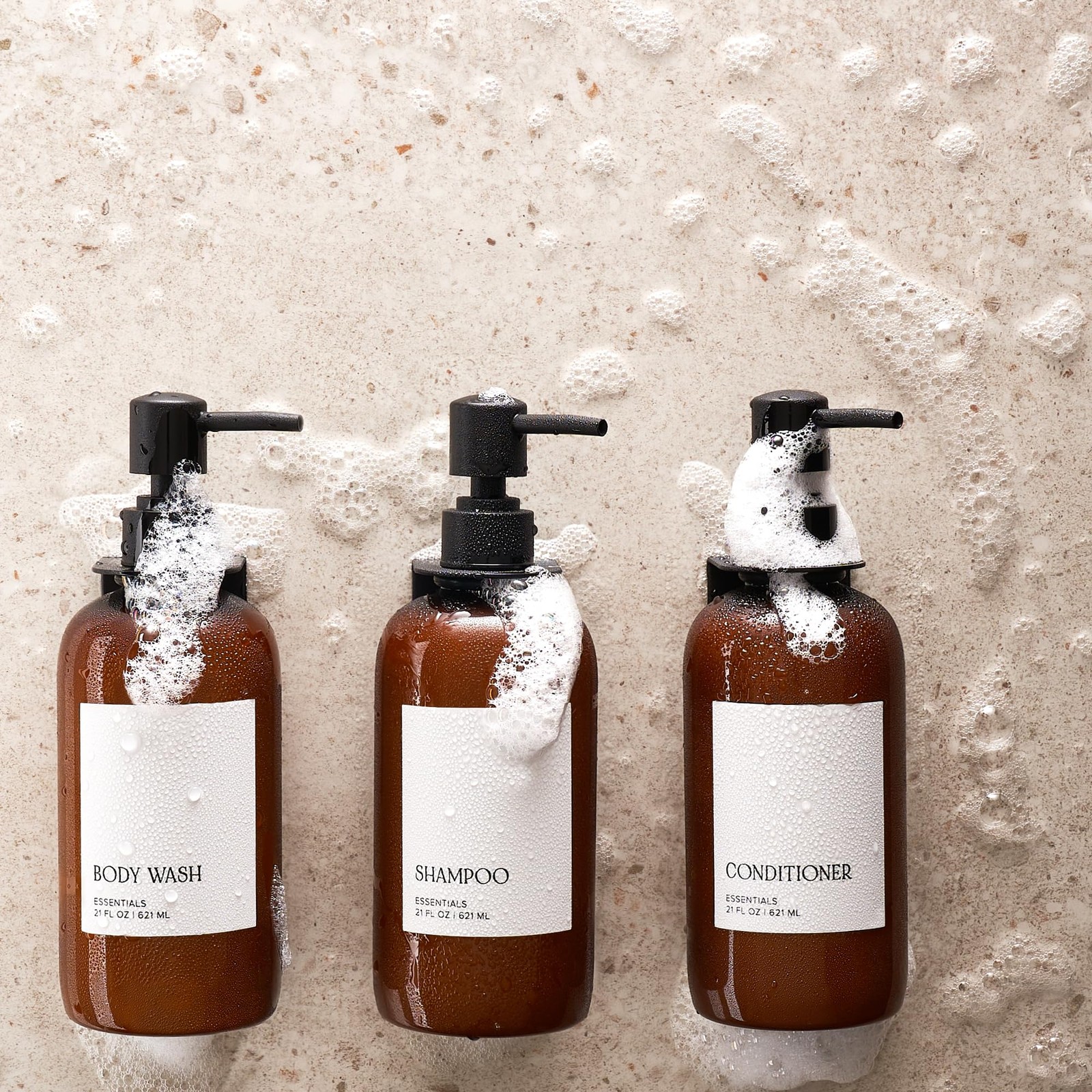 Stylish Shampoo and Conditioner Dispenser Set of 3 for Wall Mount - Modern Dr...