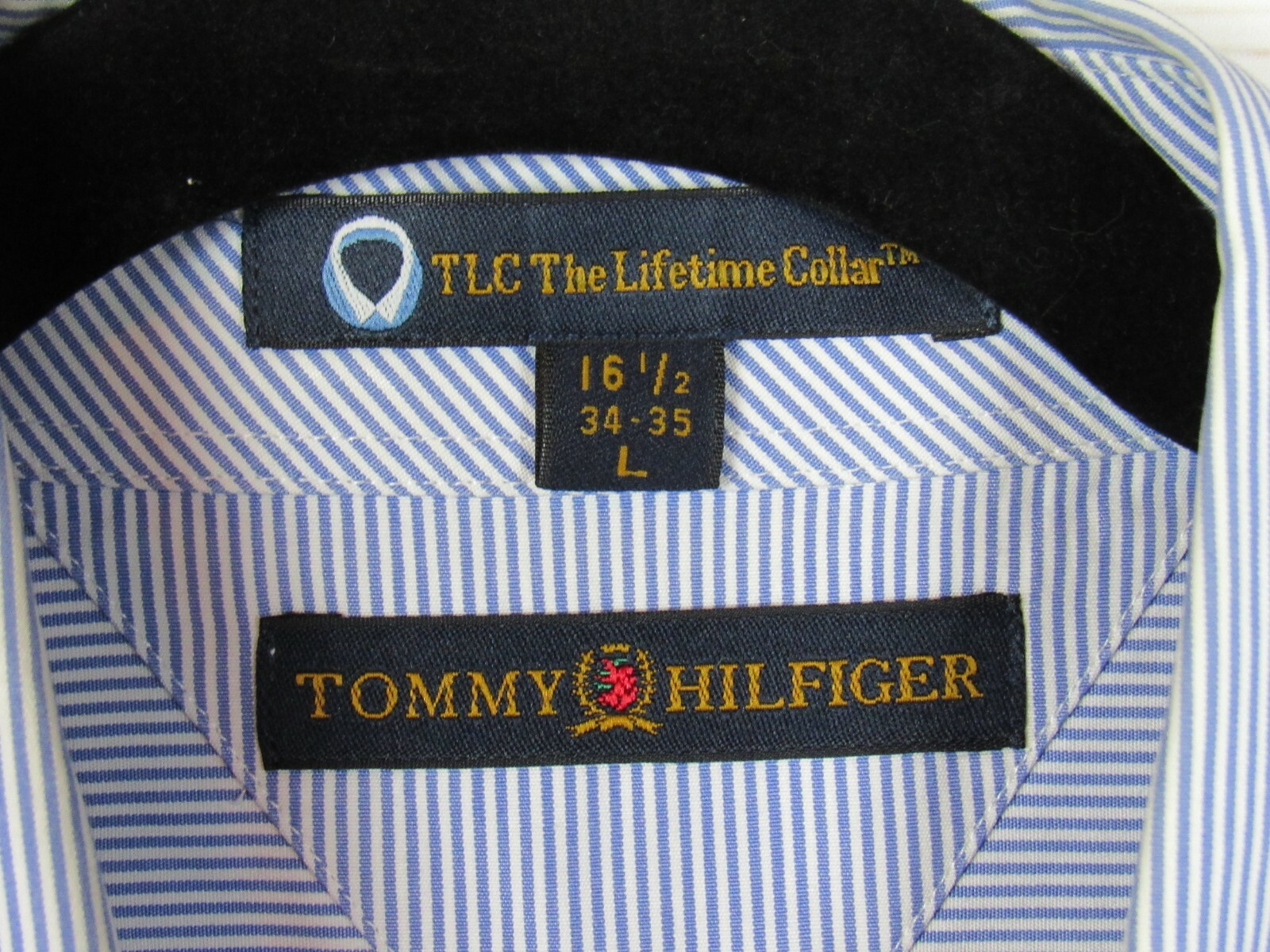 как выглядит Tommy Hilfiger Mens Long Sleeve Blue Striped Button Up Dress Shirt Size L фото