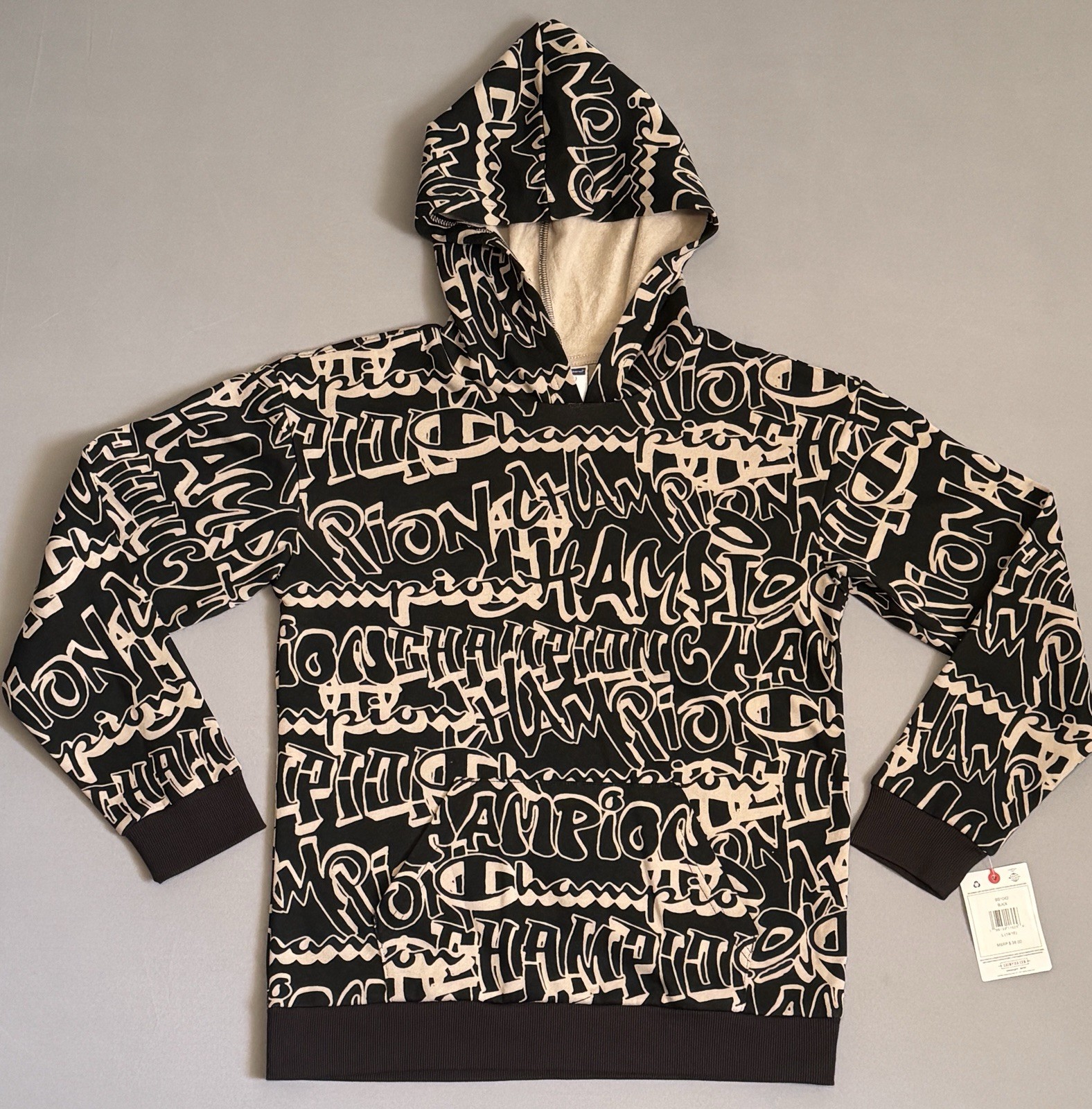 Champion Kids Hoodie Jogger Set Black Graffiti Logo Print Size L XL 14/20 NWT