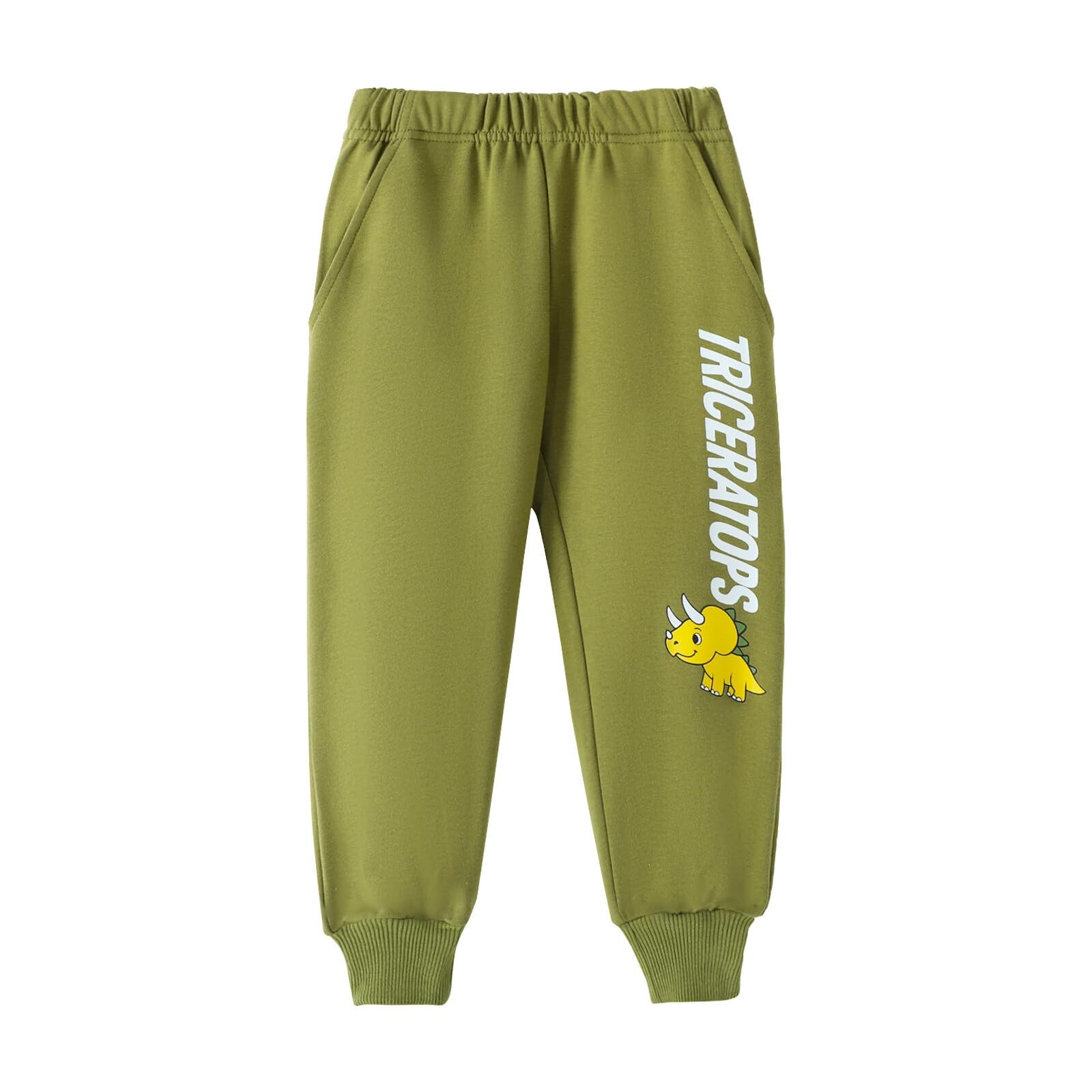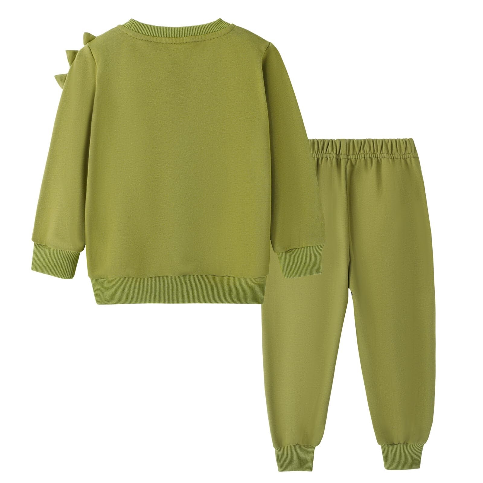 Boy 2 Piece Cotton Pullover and Sweatpants Set with Dinosaur Applique, Green ...