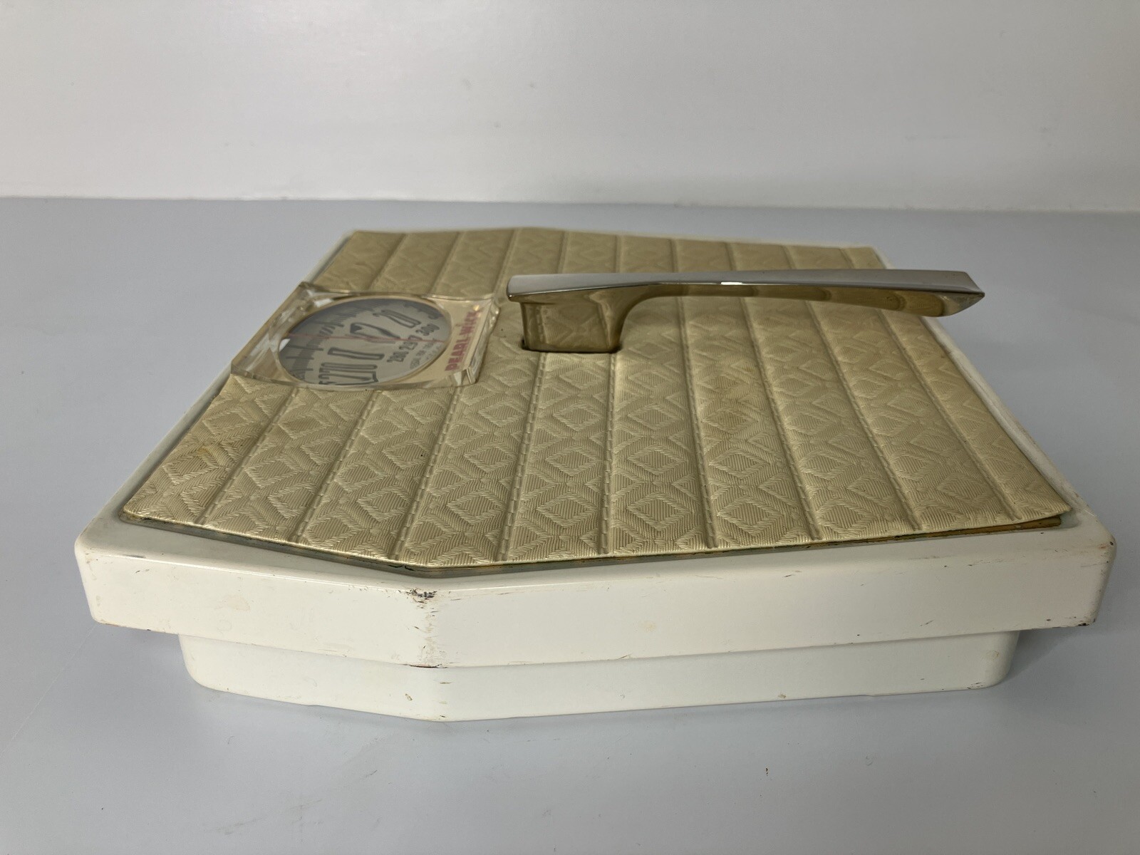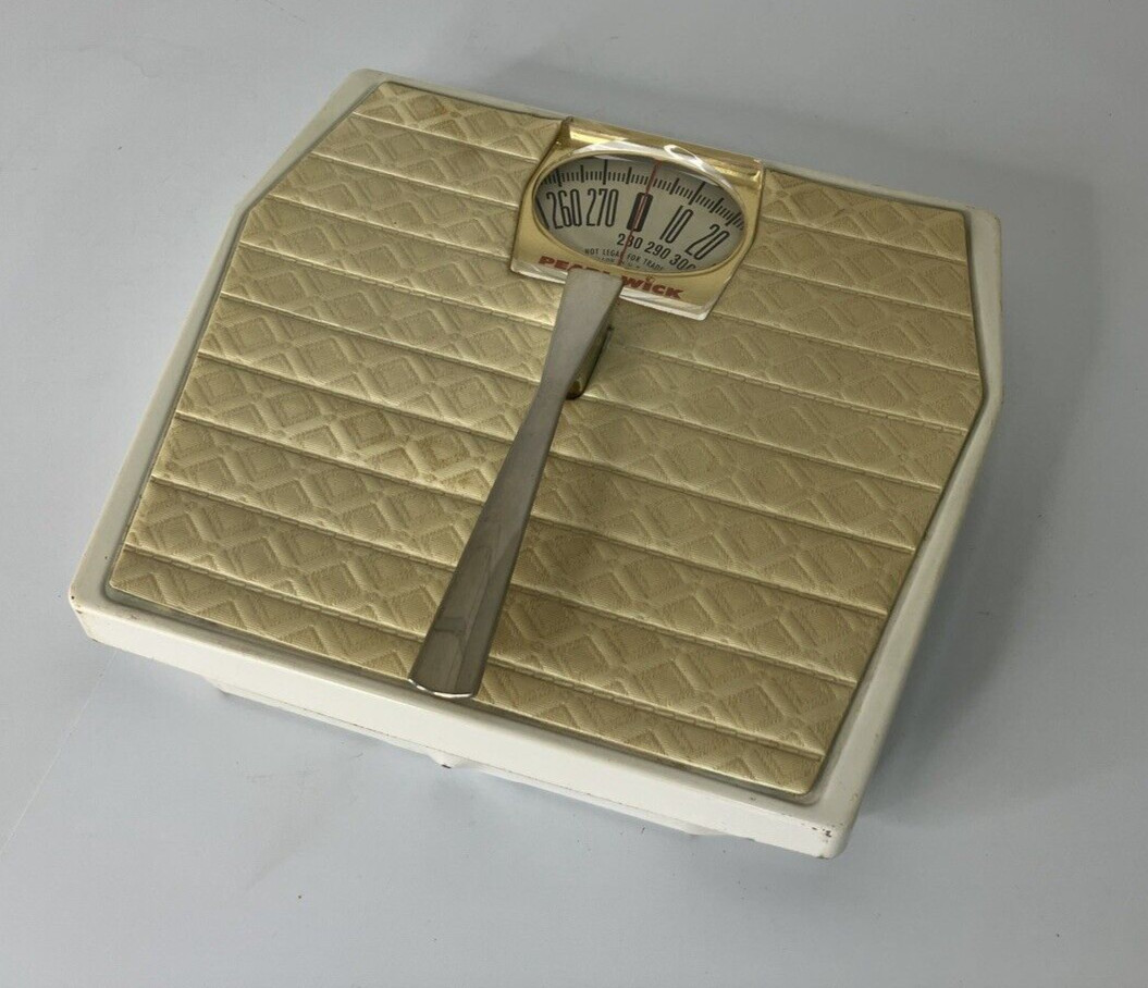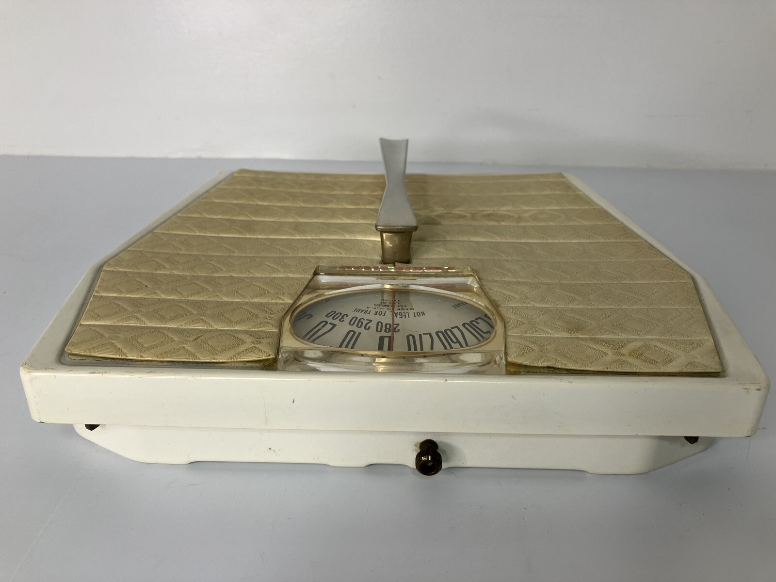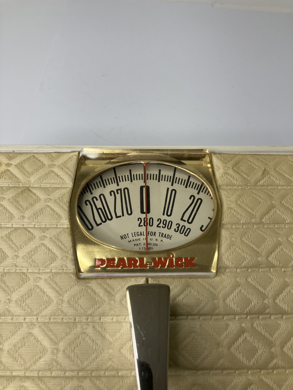Vintage Mid Century Bathroom Scale Pearl-Wick Beige/Gold Metal