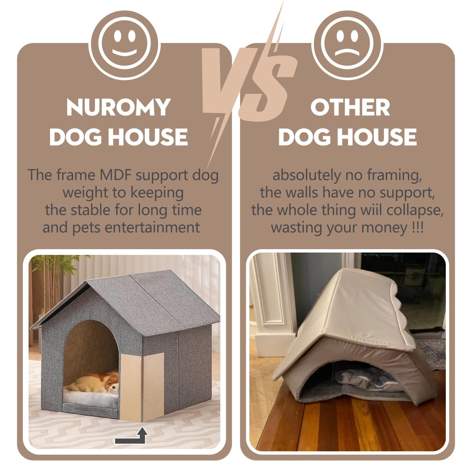 • Indoor Dog House with Washable Plush Cushion - Medium Size, Suitable for Dogs