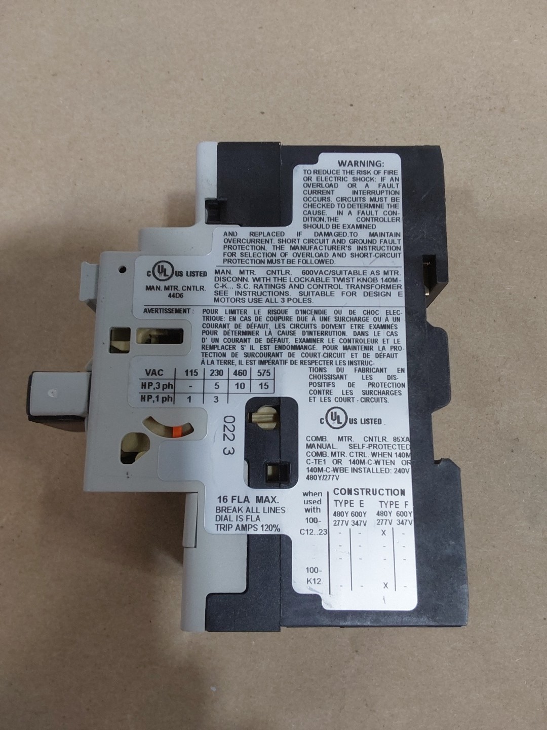 Allen Bradley 140M-C2E-C16 Ser-C Motor Protector Circuit Breaker
