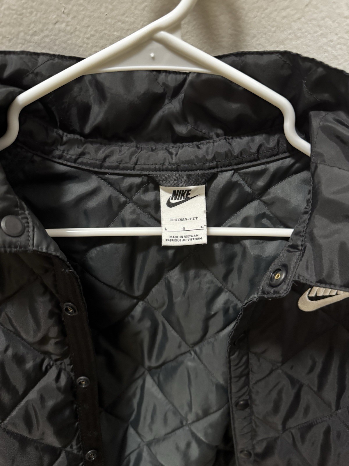 Nike Therma-Fit Quilted Jacket Black Embroidered Youth Size L Button Closure