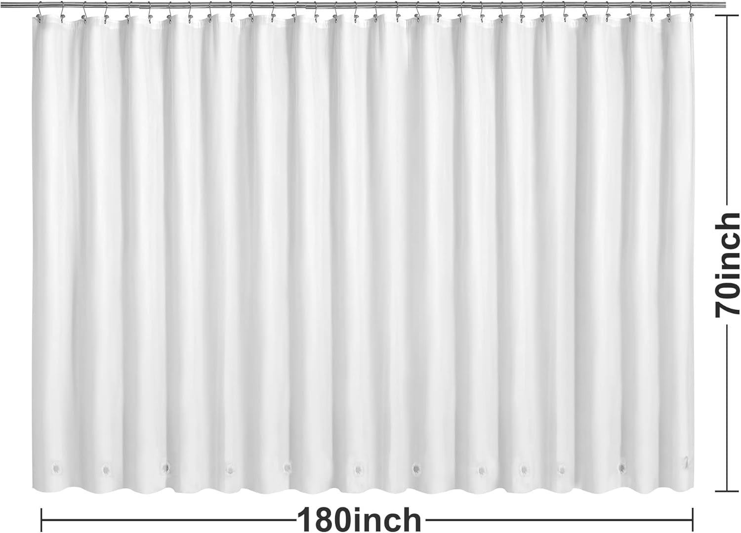 Clawfoot Tub Shower Curtain 180 W x 70 H with 12 Magnets 36 Hooks - White