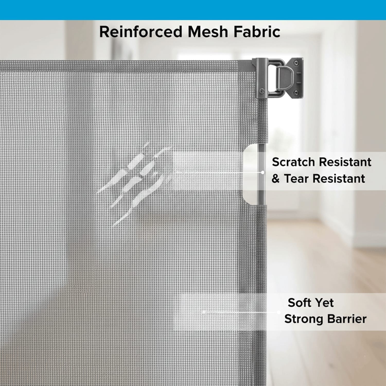 Retractable Baby Gate 55 Wide, 34 Tall for Stairs, Pets Kids Grey