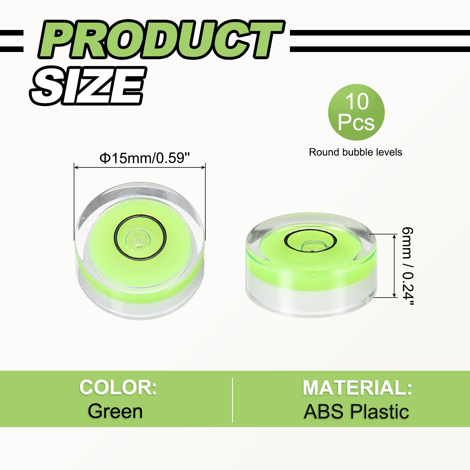 10pcs Round Bubble Level 15x6mm Mini Circular Bullseye Spirit Levels, Green