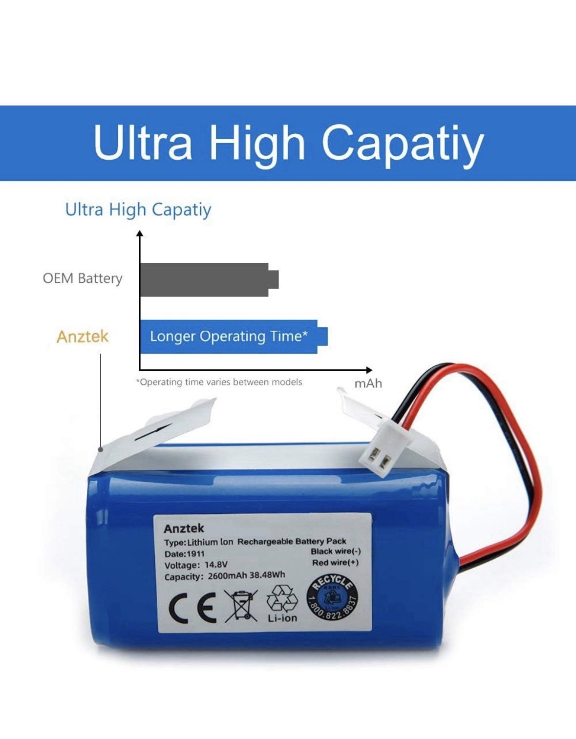 Replacement Battery For Shark Ion Robot Rvbat850 14.8V 2600Mah 2 Prong