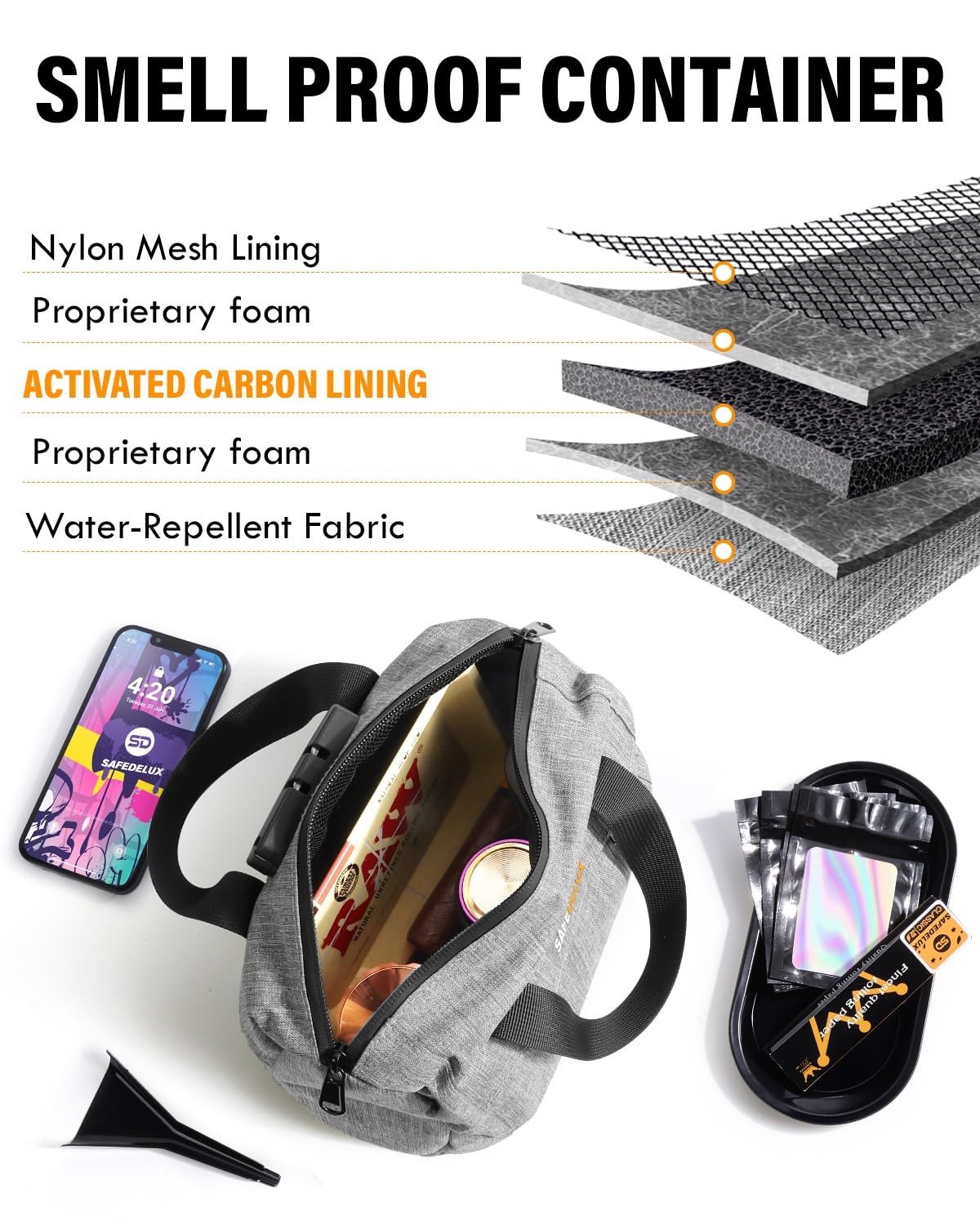 Smell Proof Bag with Combination Lock, Odorless Activated Carbon Fiber Smell ...
