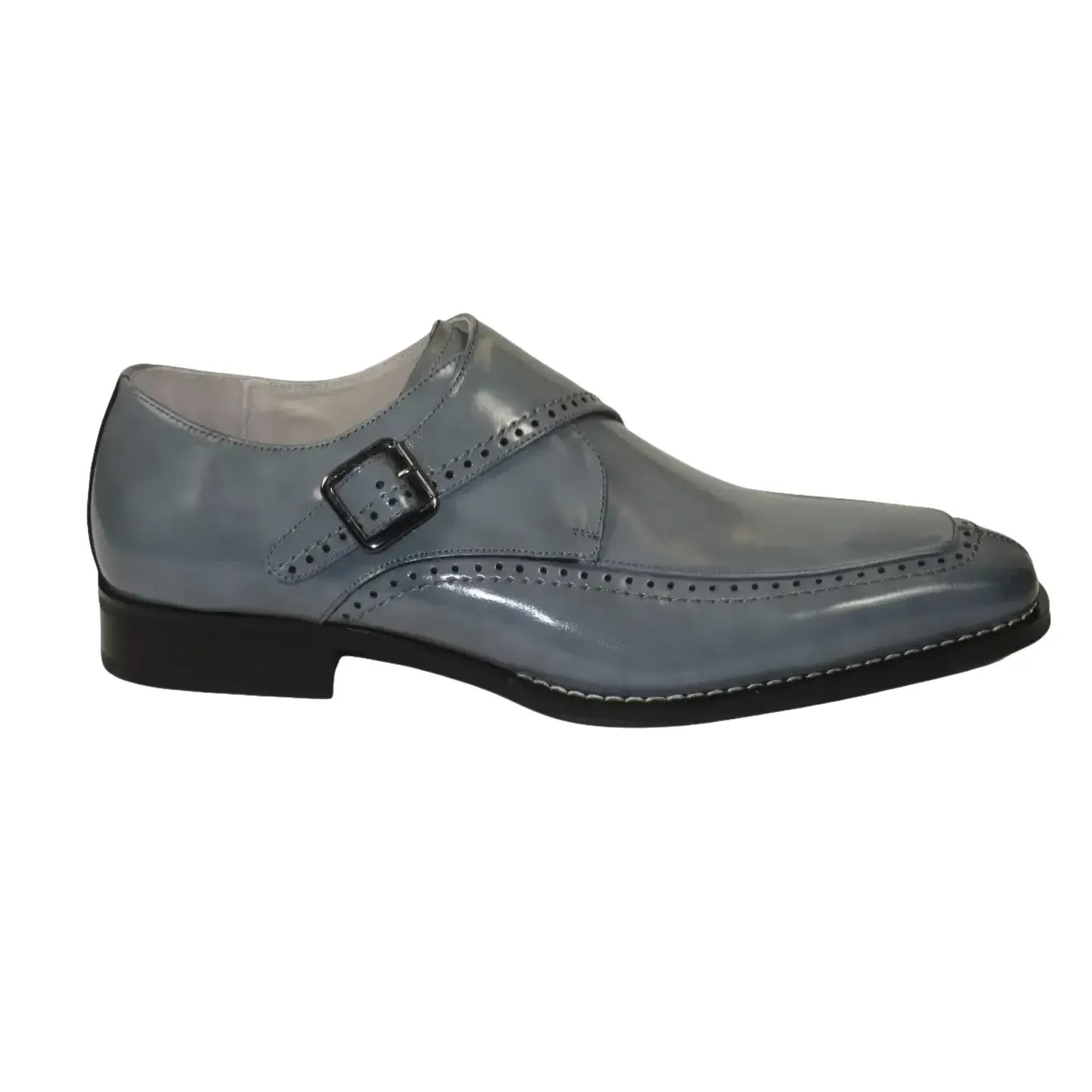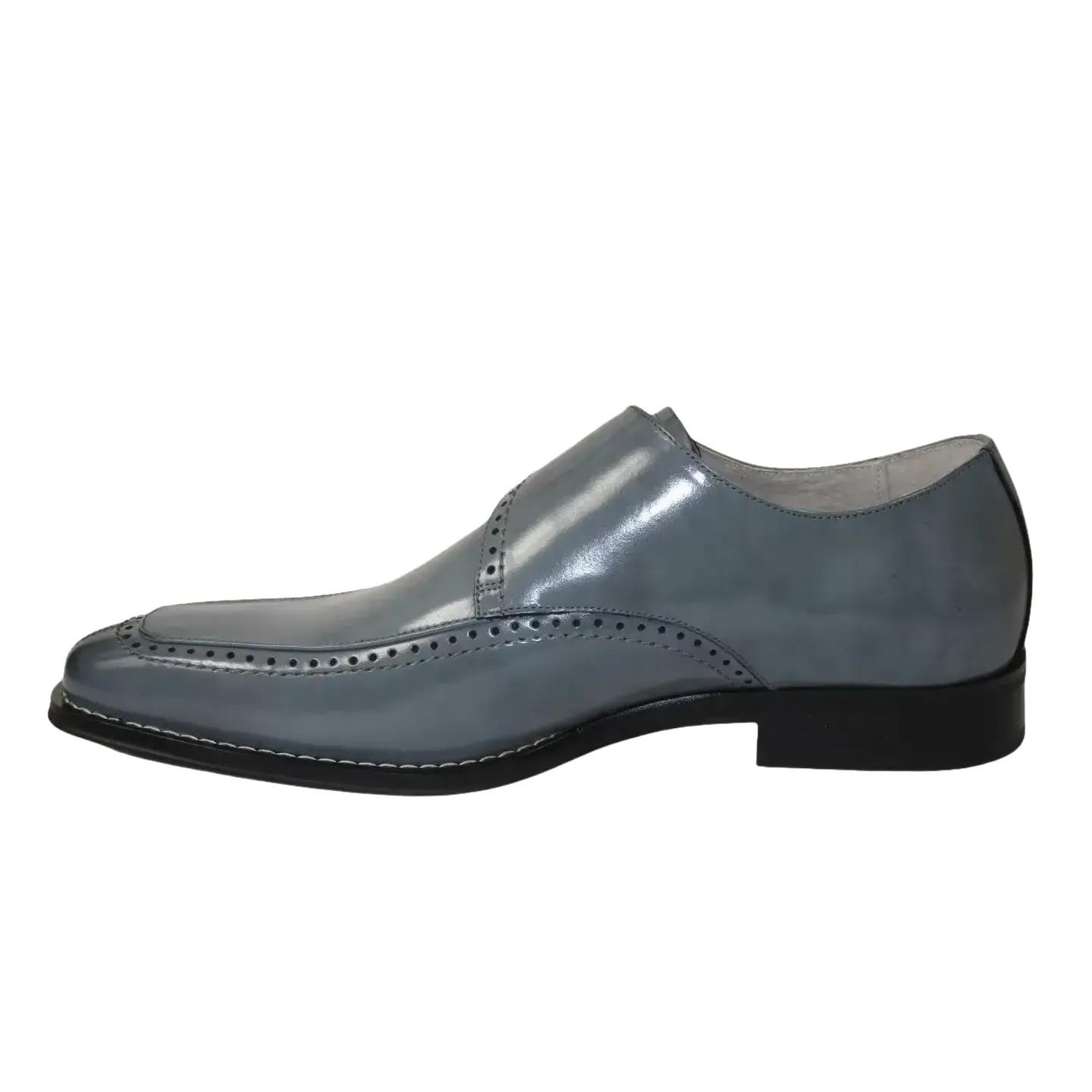 Men's Giovanni Shoes High Quality Leather Monk Strap Buckle AMATO gray