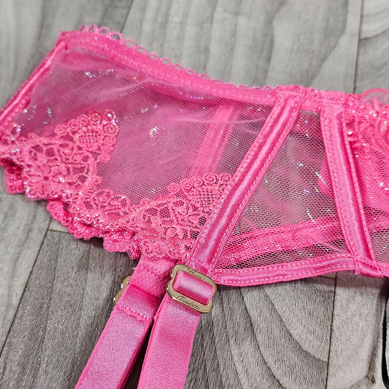 как выглядит Honey Birdette Natalie Pink Shimmer Embroidered Suspender Garter Belt Size L фото