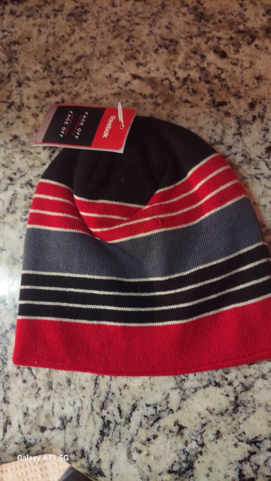 как выглядит NWT REEBOK CHICAGO BLACKHAWKS CUFFLESS NHL KNIT STRIPED BEANIE HAT CAP OSFA фото