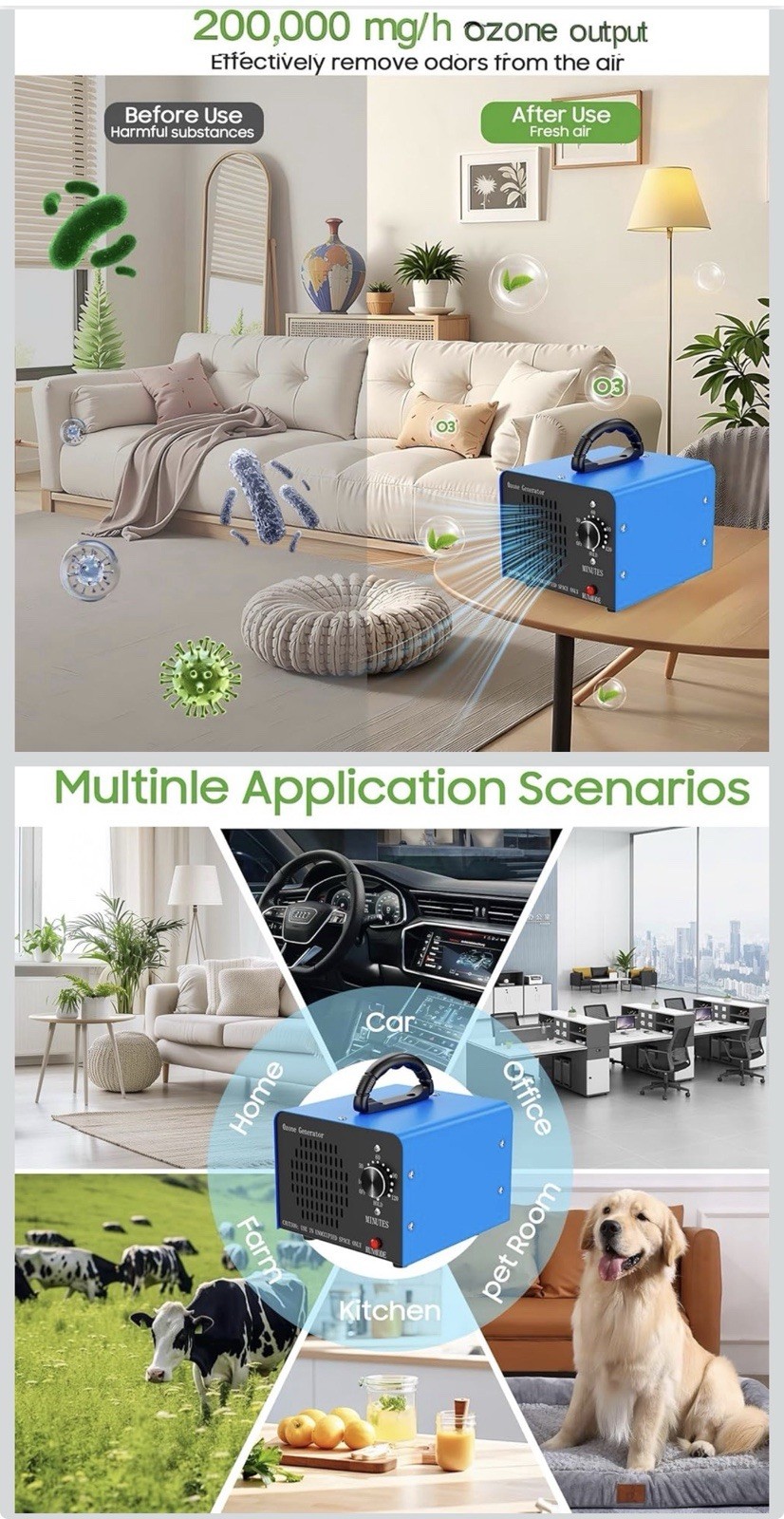 Ozone Generator Machine100,000mg/h, High Capacity Ozone Odor Eliminator Removal