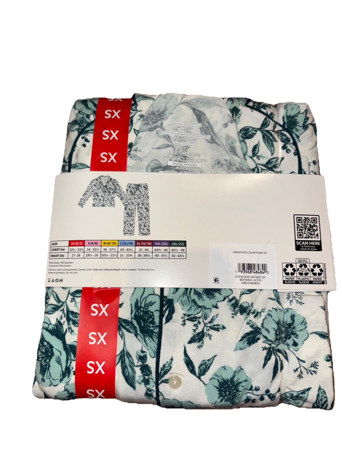 NWT Women's Green/White MEMBERS MARK Dream Mark Notch Collar Pajama Set XS