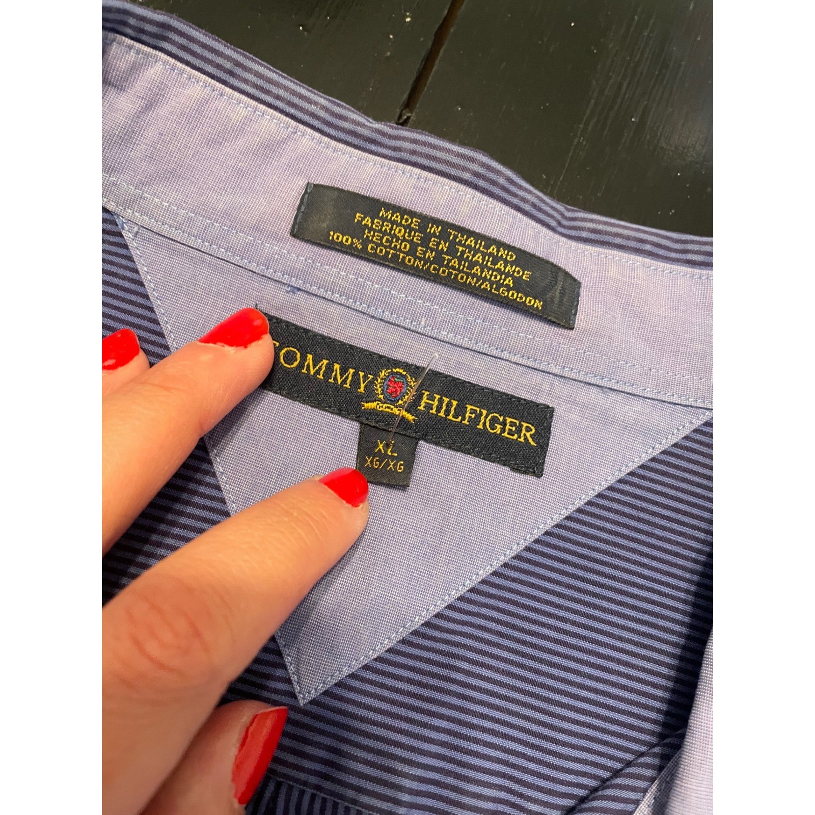 как выглядит Tommy Hilfiger Mens XL Blue Stripe Dress Shirt Button Down Long Sleeve Cotton фото