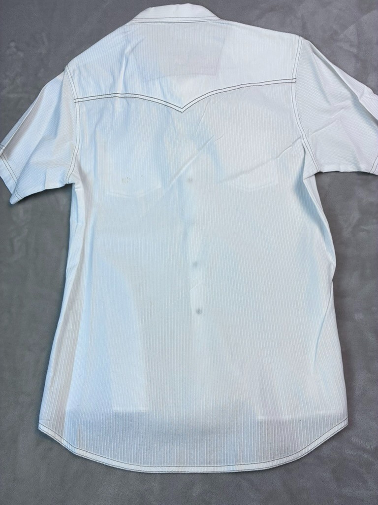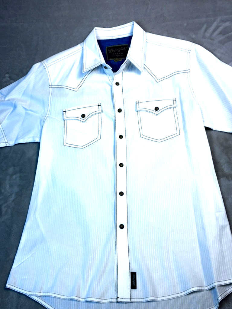 Wrangler Retro Men's M Shirt Short Sleeve Ivory Snaps Western 100 Cotton Rodeo