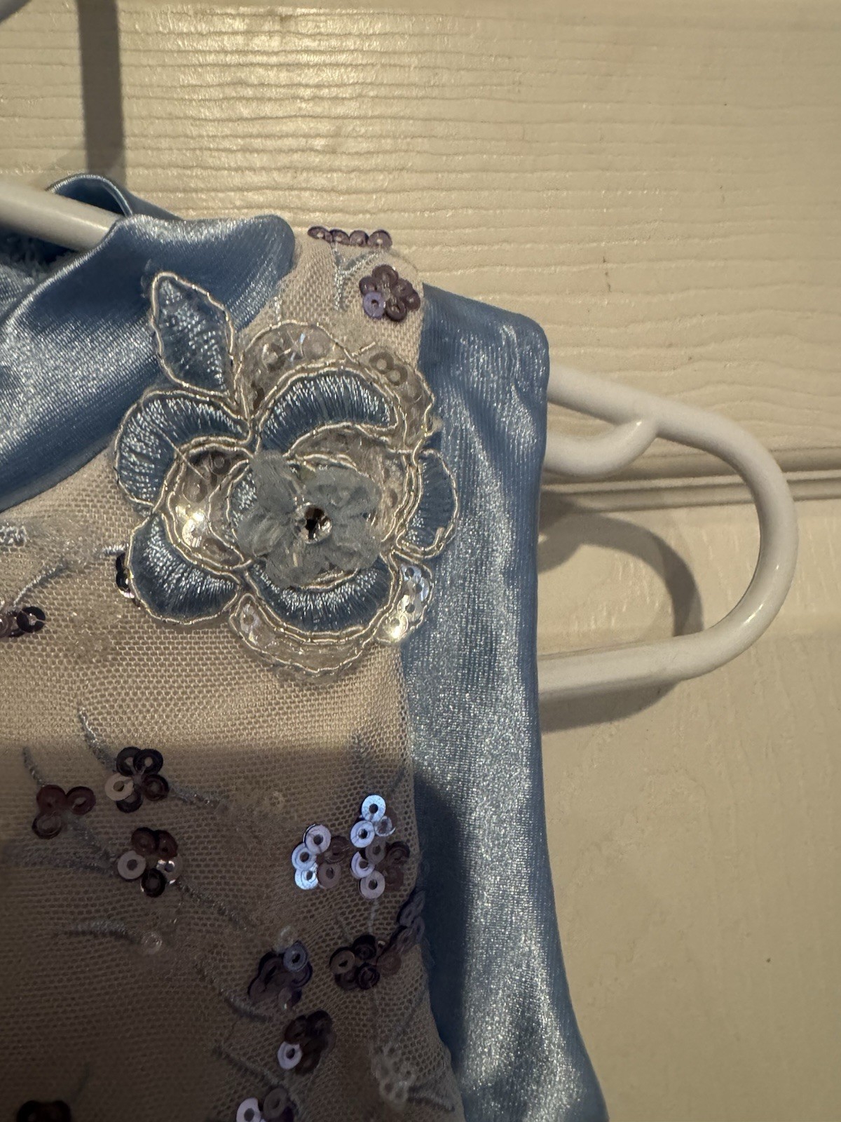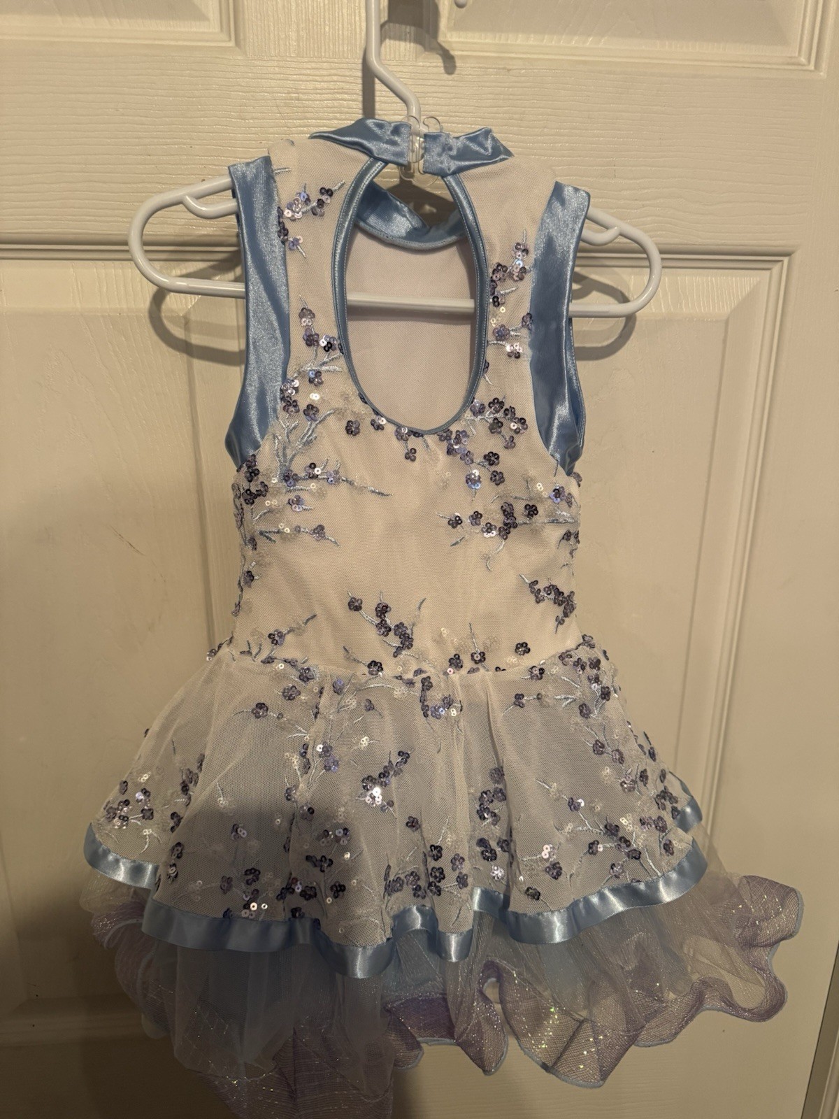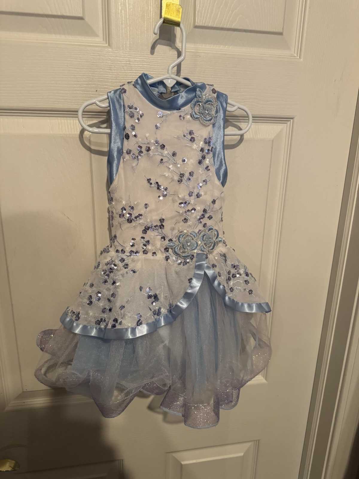 как выглядит Weissman Blue White Sequin Tulle Dance Costume Child Size Small SC W/ Hairclip фото