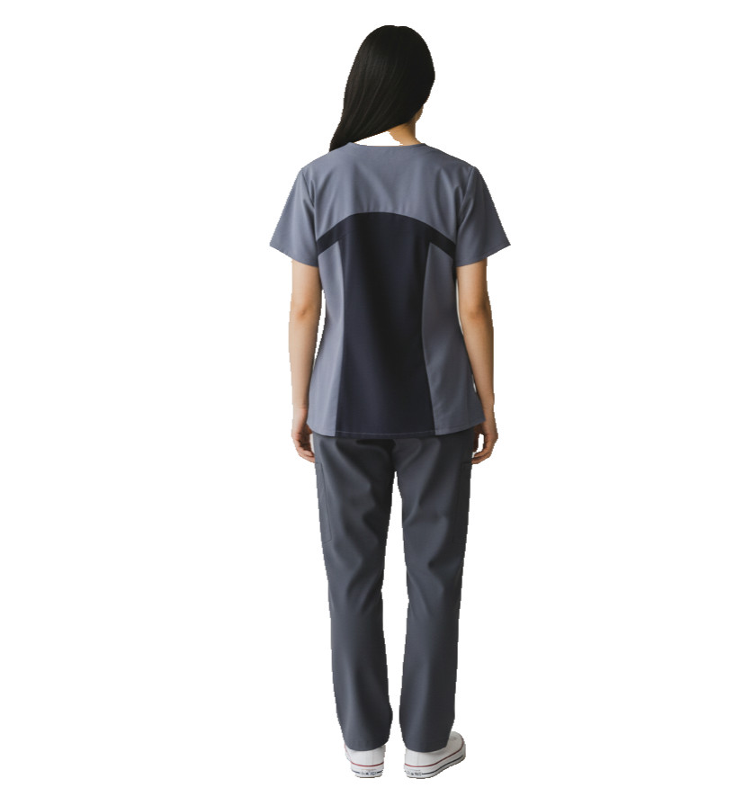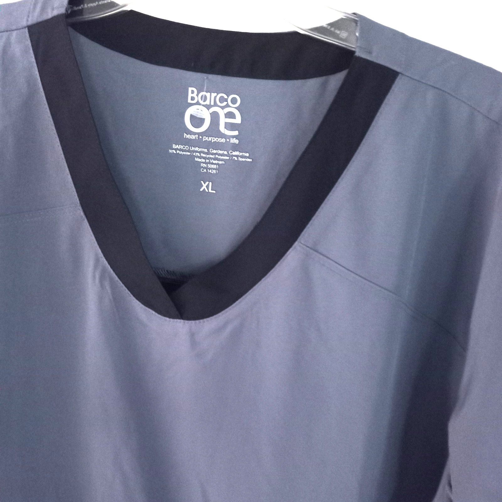 Barco One Women s Scrub Top XL Gray Black 2-Tone 4-Way Stretch NWT Medical