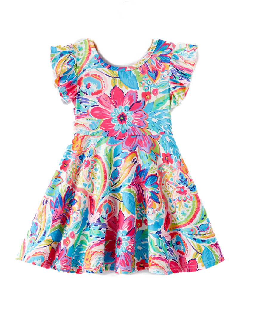 New Boutique Girls Floral Dress Size 4 Pullover Flutter Sleeve Watercolor