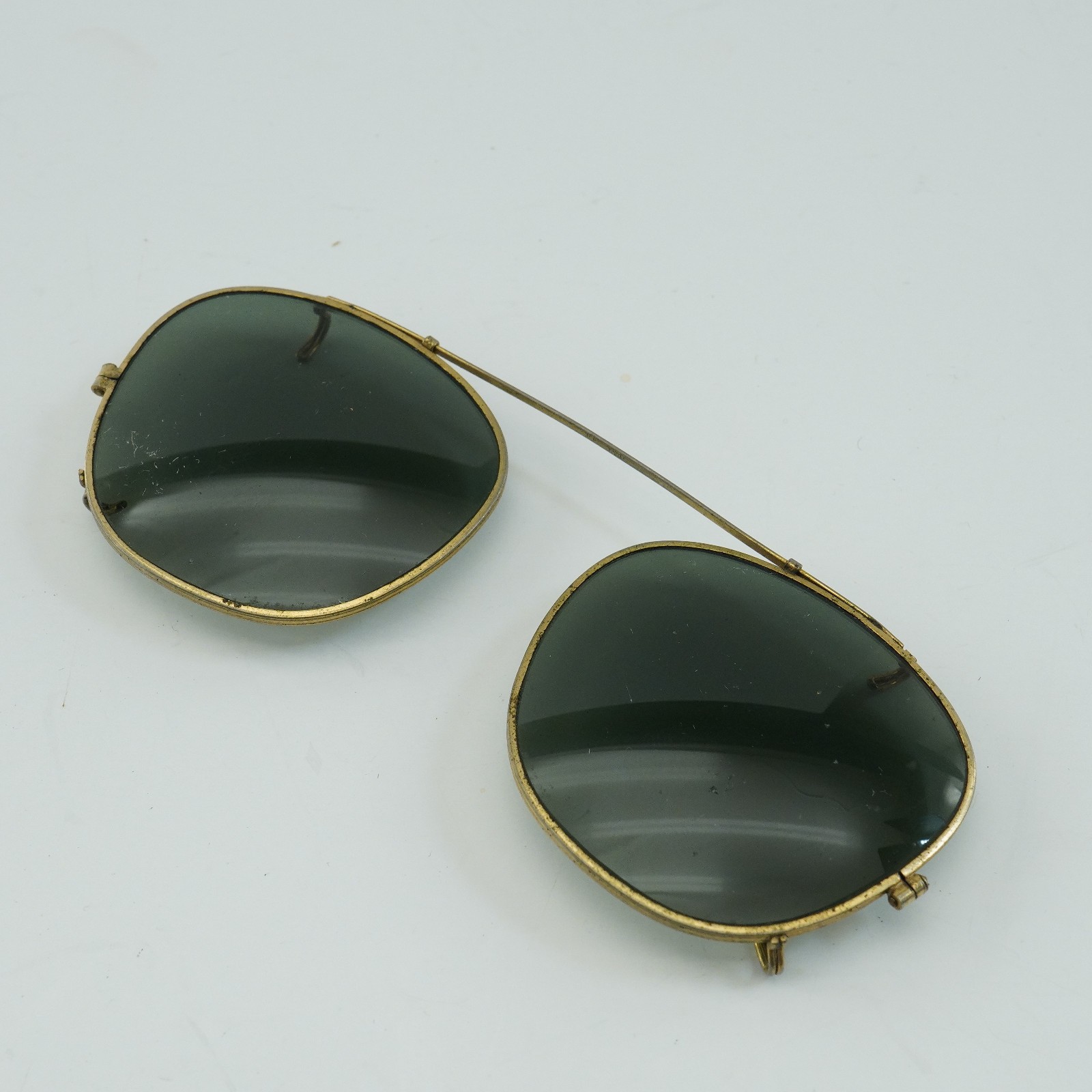 как выглядит 2 pairs Vintage Ray-Ban Clip-on Sun Glasses 1980s 1990s dark gold фото