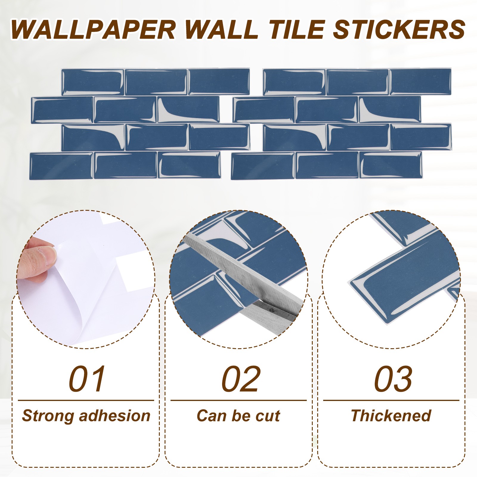 10Pcs 9.4x4.7 Peel and Stick Backsplash Tiles Mable Tile Stickers, Sea Blue
