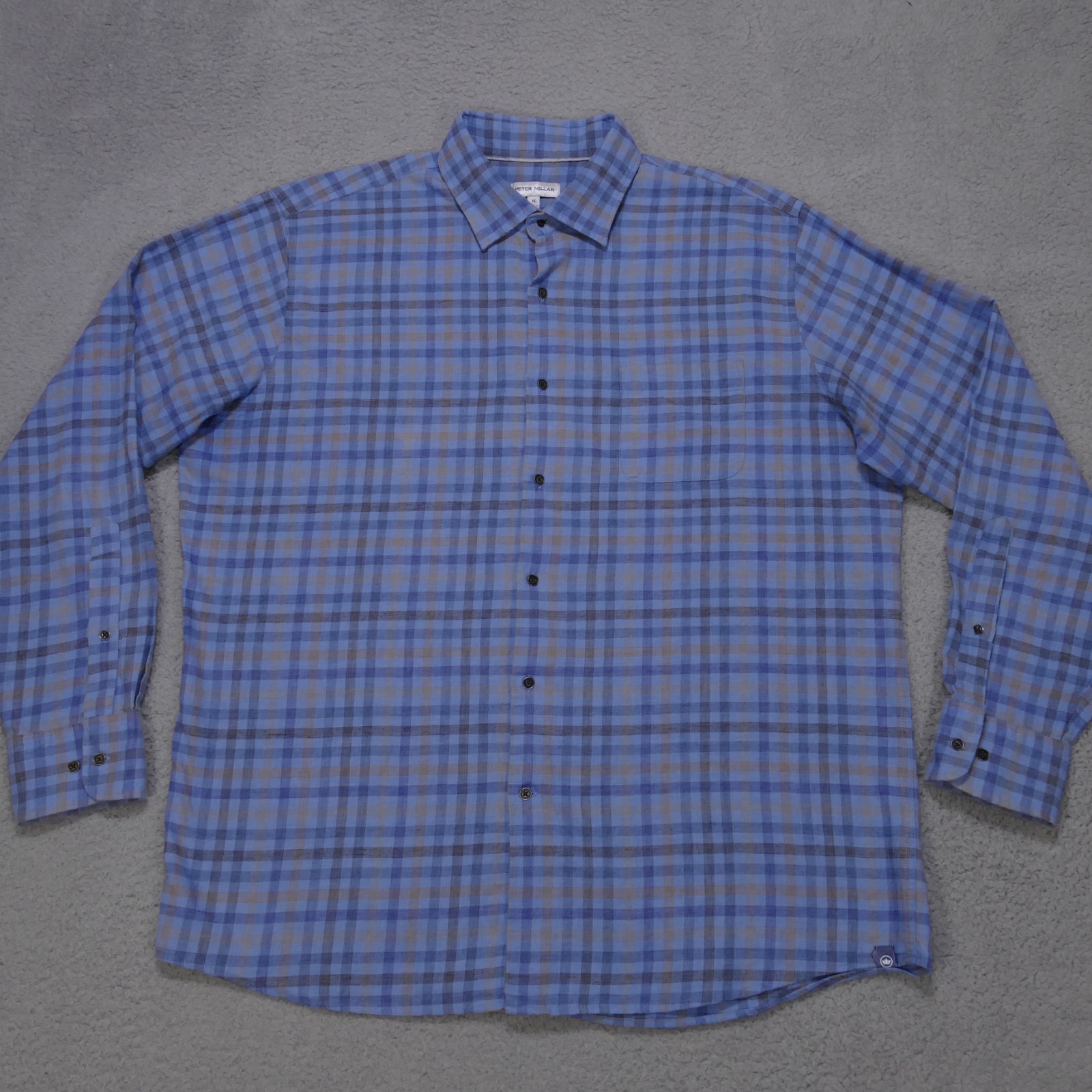 Peter Millar Shirt Mens XL Blue Plaid Button Up Long Sleeve Cotton