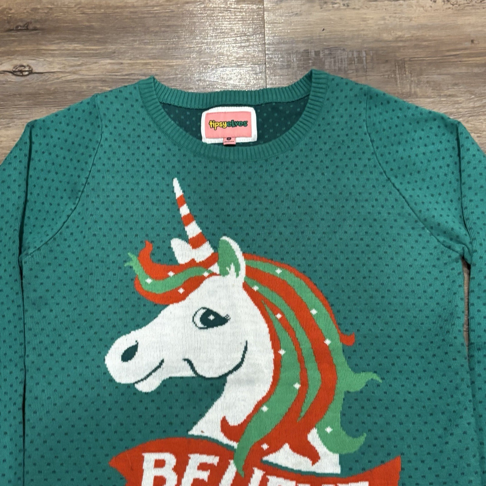 Tipsy Elves Women's Santa on Unicorn Sweater - Ugly Christmas - Medium