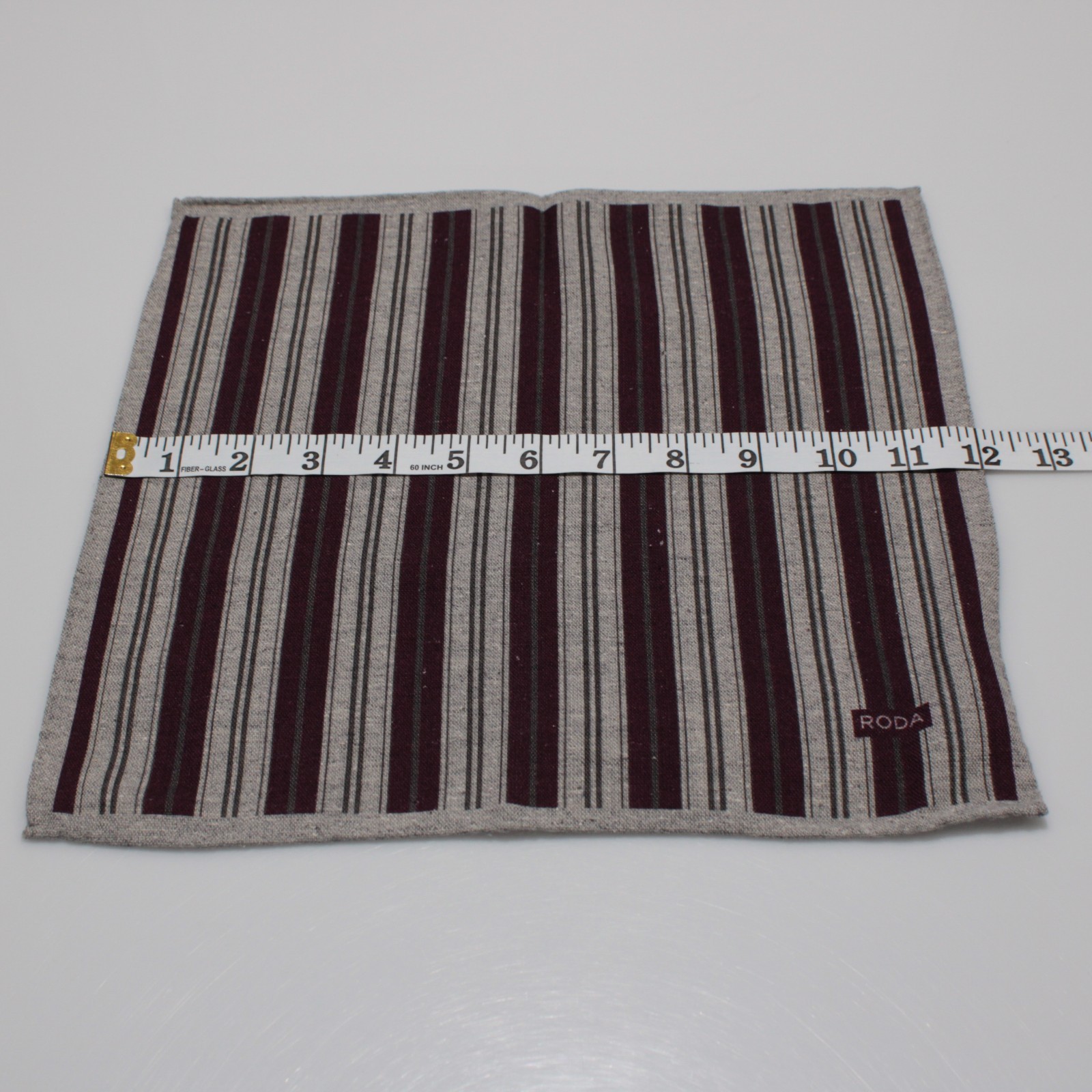 Roda NWT Wool Blend Pocket Square In Red and Light / Dark Gray Stripes