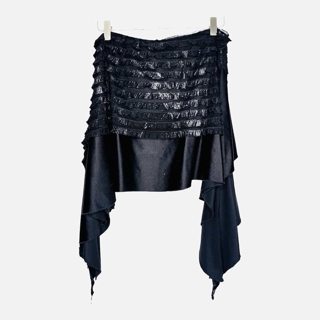 Salsa Latin Dance Skirt Black Ruffle Asymmetrical Tango Ballroom Practice Skirt