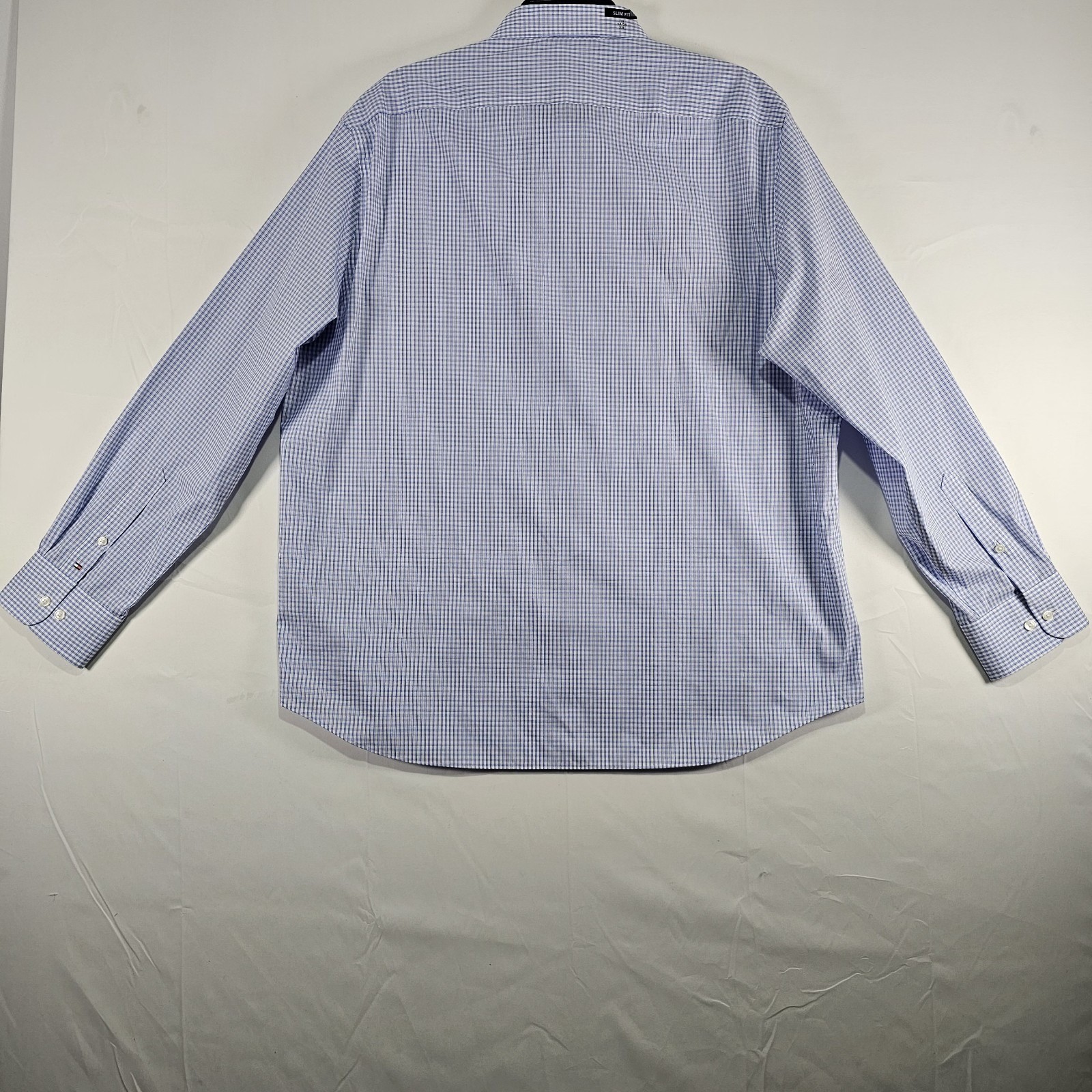 как выглядит Tommy Hilfiger TH Flex Slim Fit Stretch Twill Dress Shirt Blue Check 18 34/35 фото