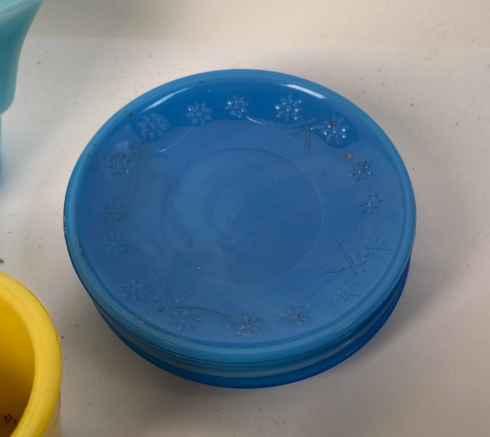 Akro Agate Tea Set Partial Raised Daisy 15 Pieces