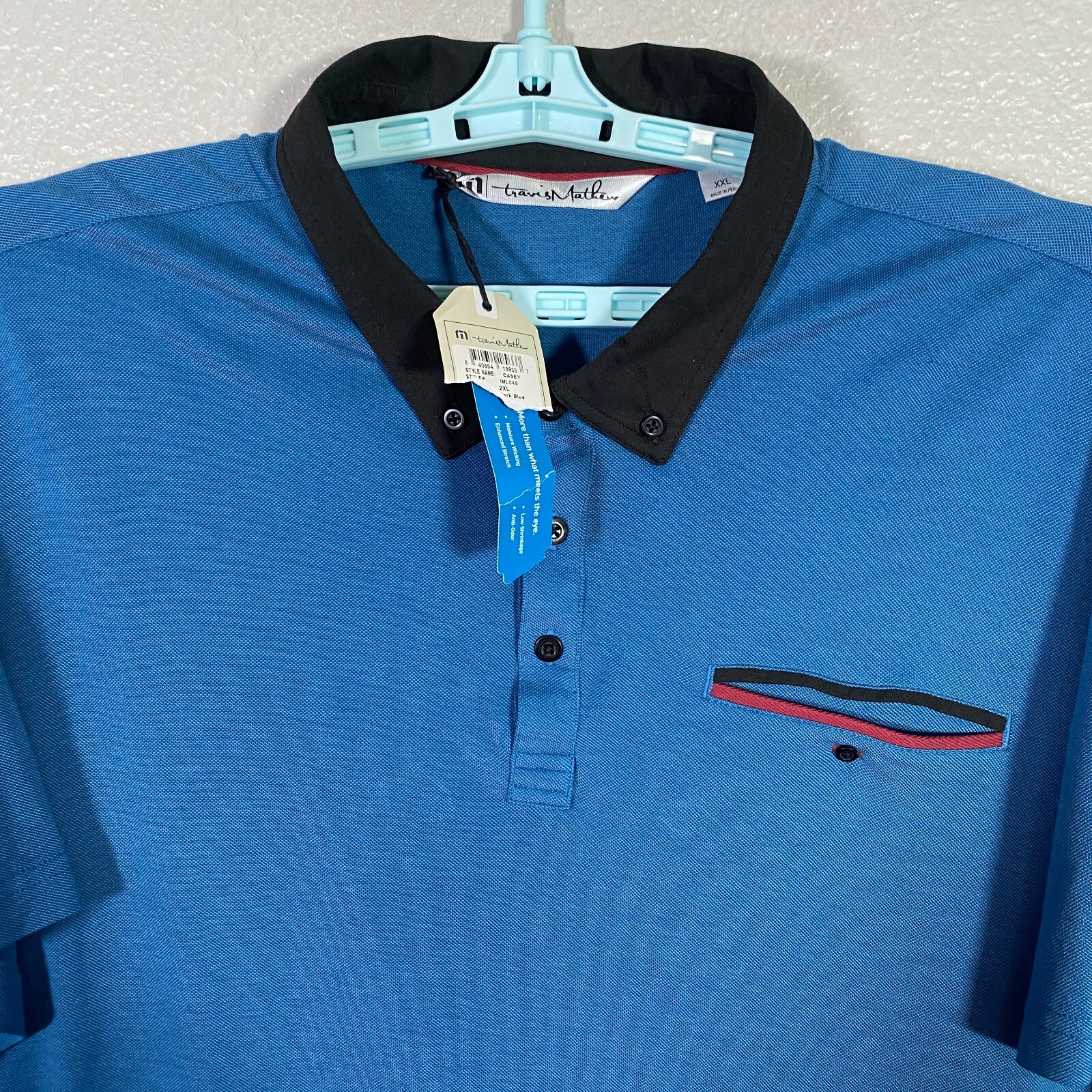 как выглядит Travis Mathew Polo Shirt Mens 2XL Blue Golf Performance Stretch Casey Prestige фото