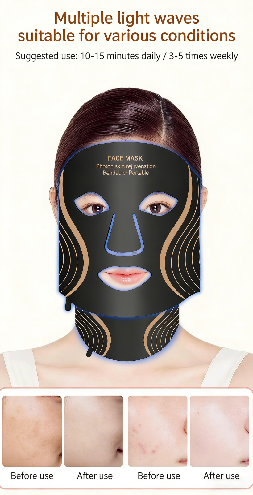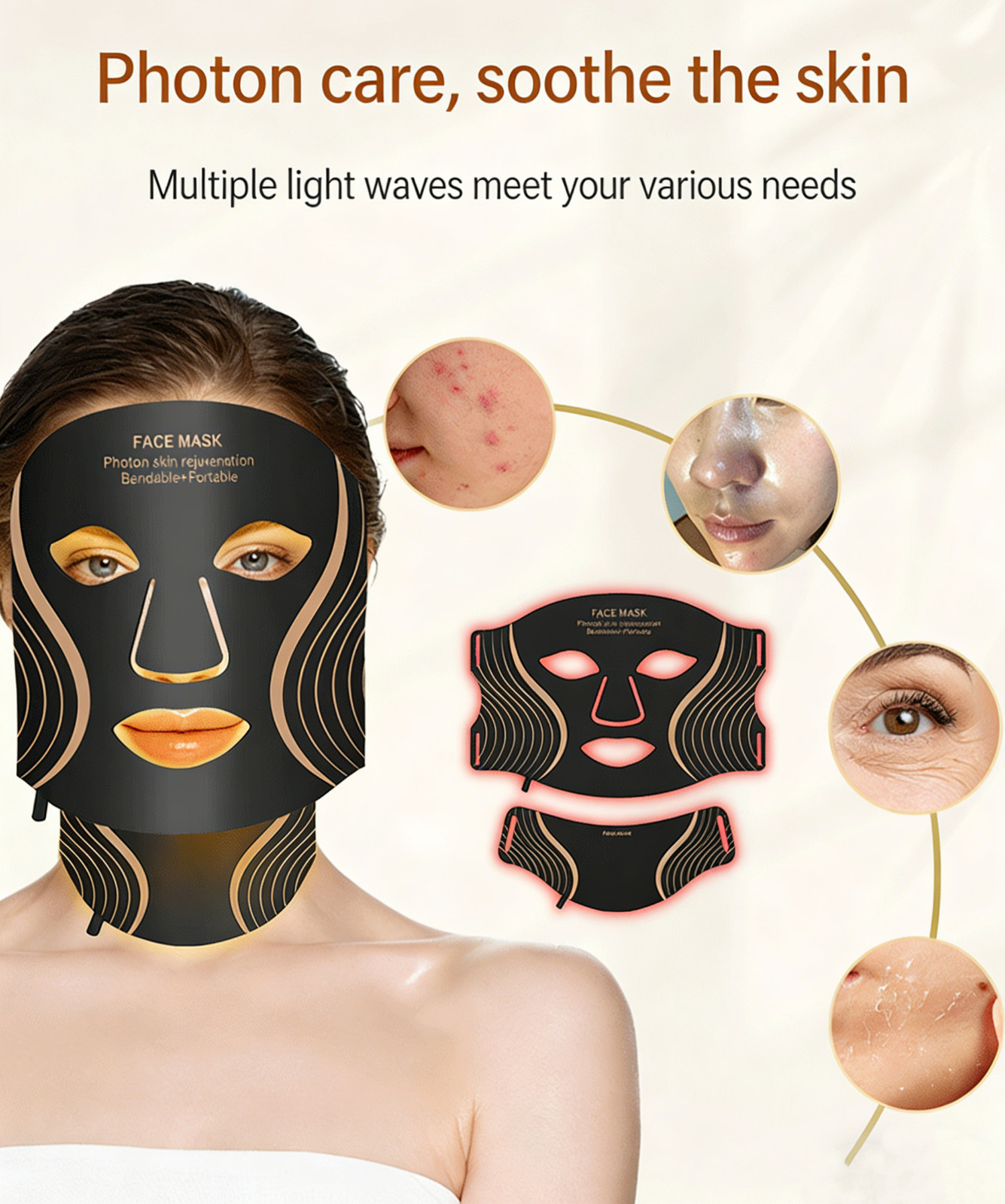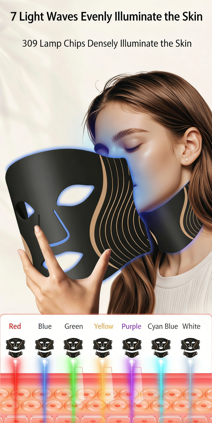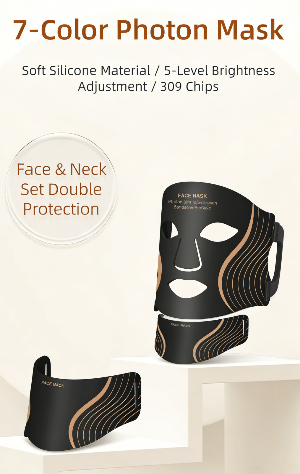 Red Light Therapy Mask and neck set, 7 Colors LED Light Wavelengths Red Light