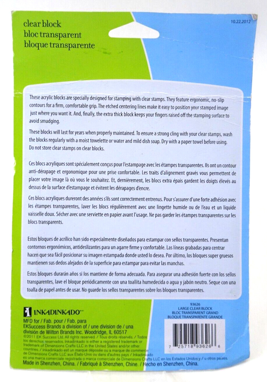 Inkadinkado Large Acrylic Mounting Block for Clear Stamps NEW 3.5'' x 5.0