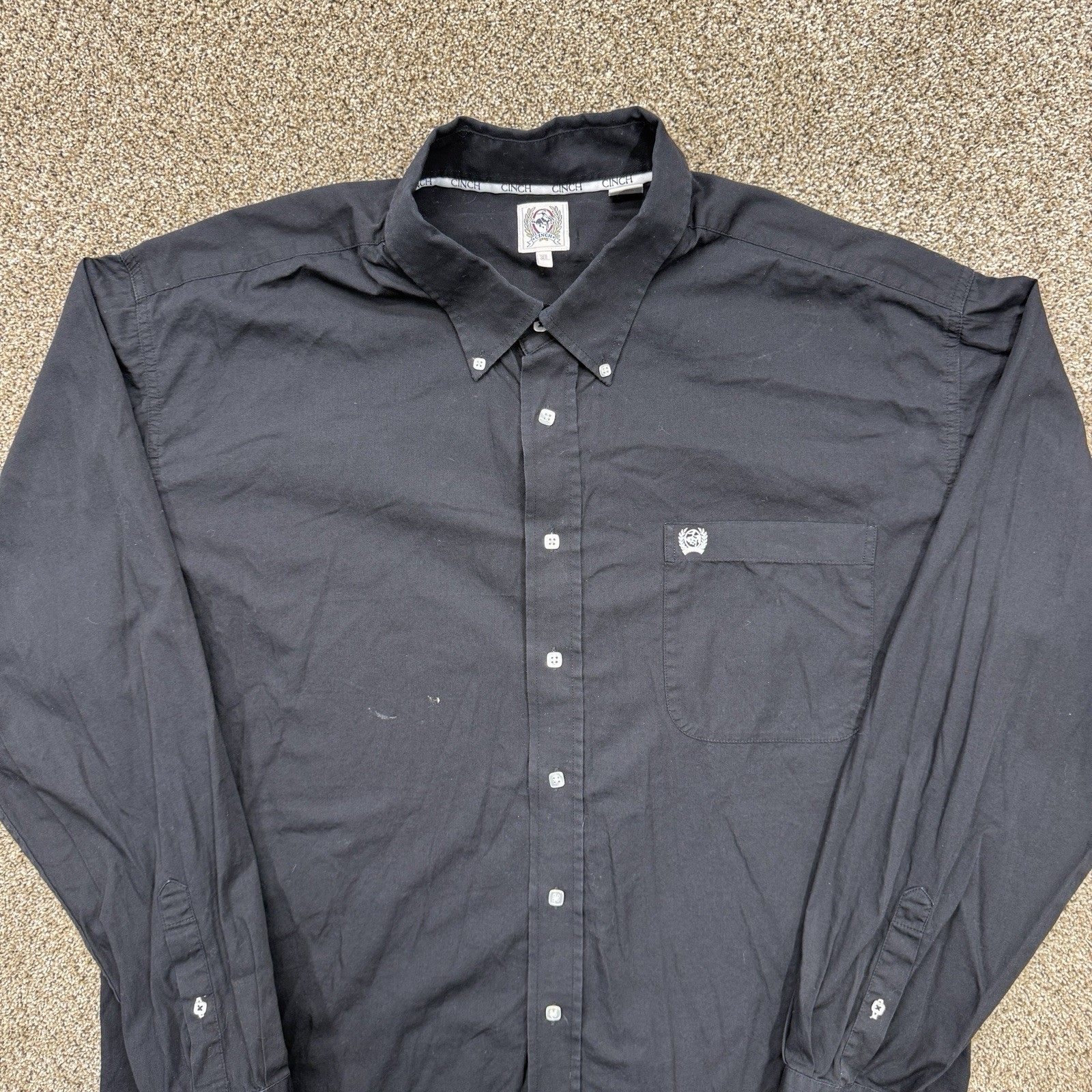 Cinch Shirt Mens XL Black Solid Long Sleeve Button Down Western Ranch Rodeo