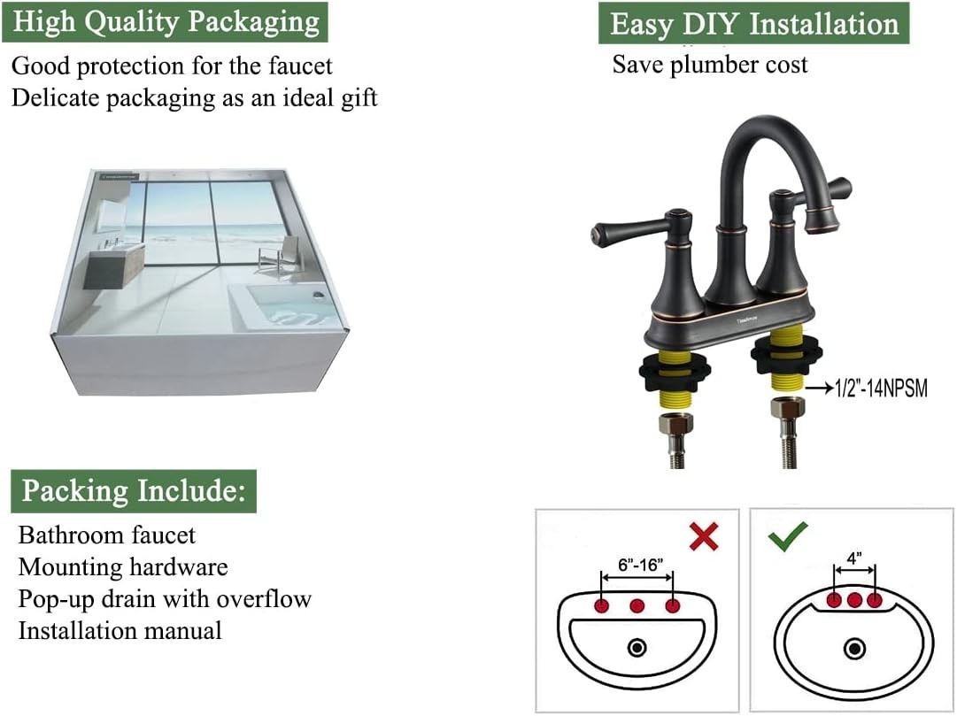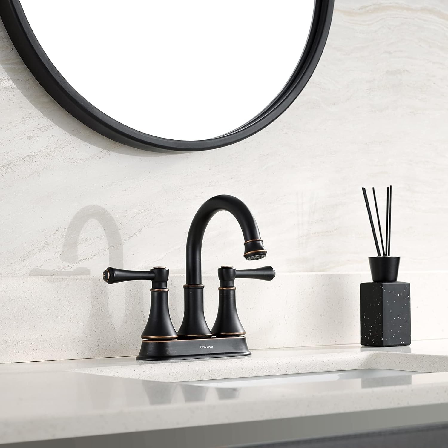Oil Rubbed Bronze 2 Handle Centerset Bathroom Sink Faucet with Pop up Drain, ...