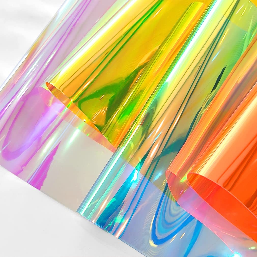 10 Pcs Holographic Clear PVC Vinyl, A4 Iridescent Waterproof Mirrored Foil La