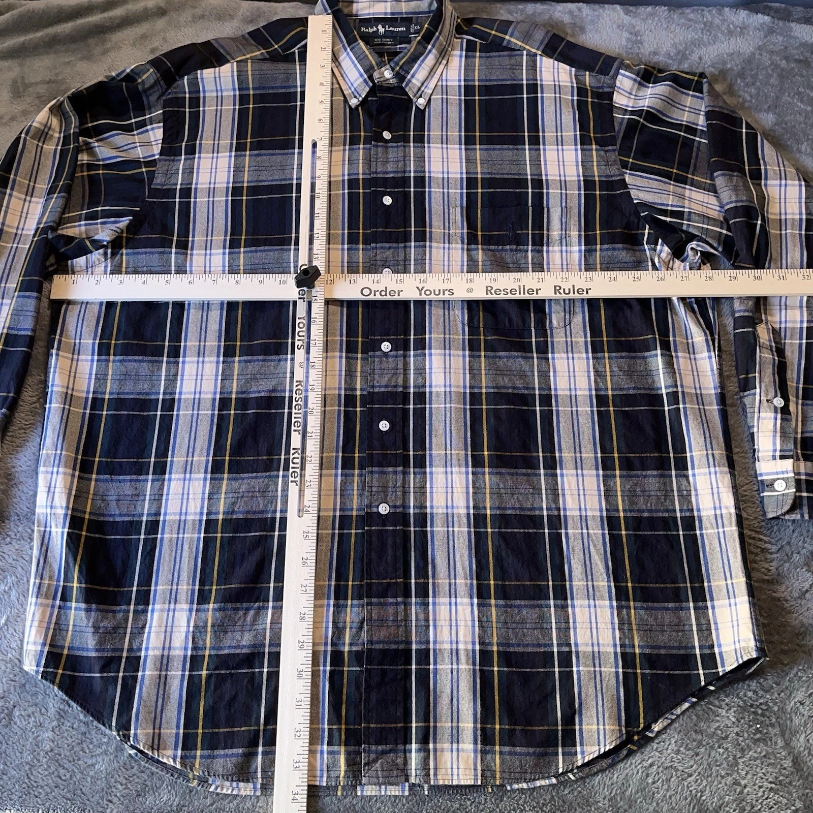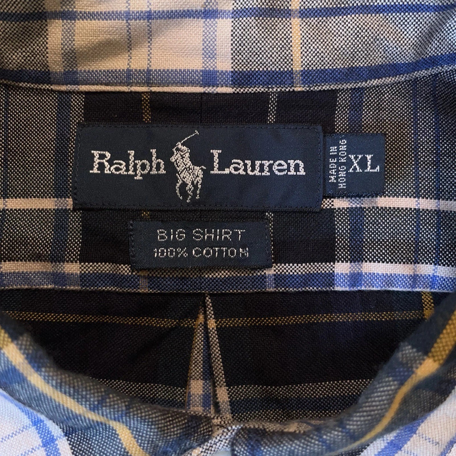 как выглядит Vintage Ralph Lauren Big Shirt Men s XL Blue Plaid Button Up Cotton Hong Kong фото